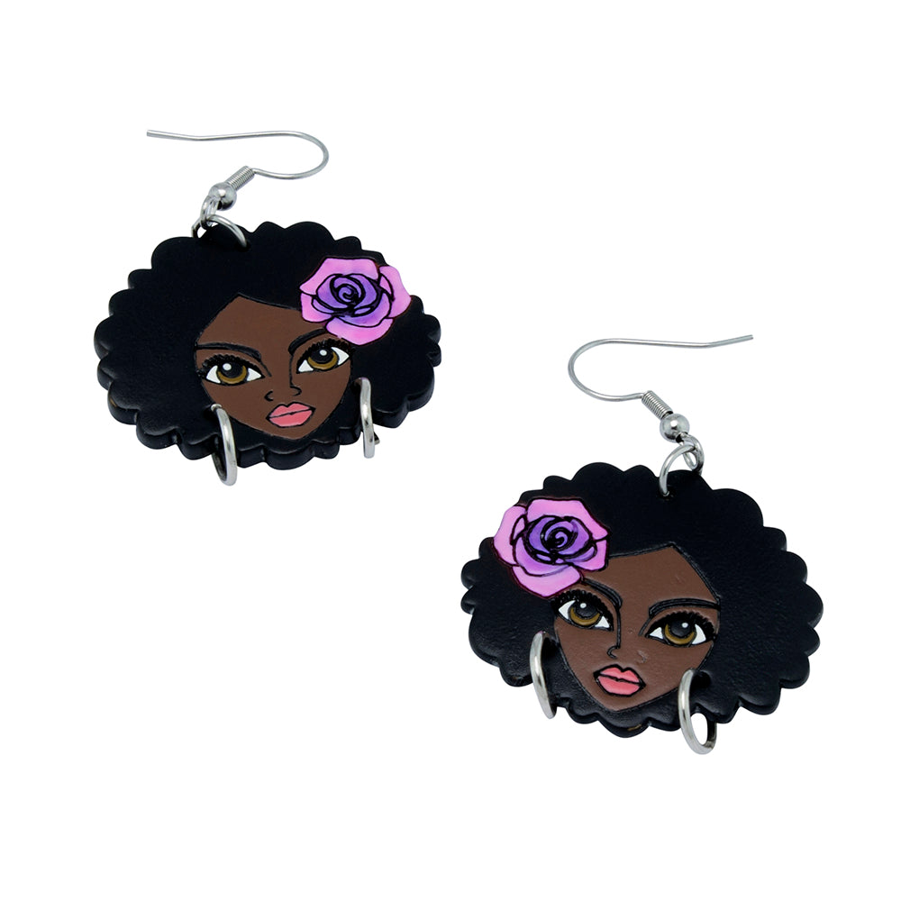 Elevate your style with our Black Girl Image Earrings, exclusively at She She’s Closet. These stunning earrings are crafted from lightweight, Fairtrade wooden slices, ensuring both sustainability and style. Each piece showcases intricate laser etching that beautifully captures the essence of black beauty and culture. Hand-painted with care, these earrings offer a unique blend of craftsmanship and artistry. Perfect for those who appreciate jewelry that makes a statement, these earrings add a touch of cultural pride and elegance to any outfit.