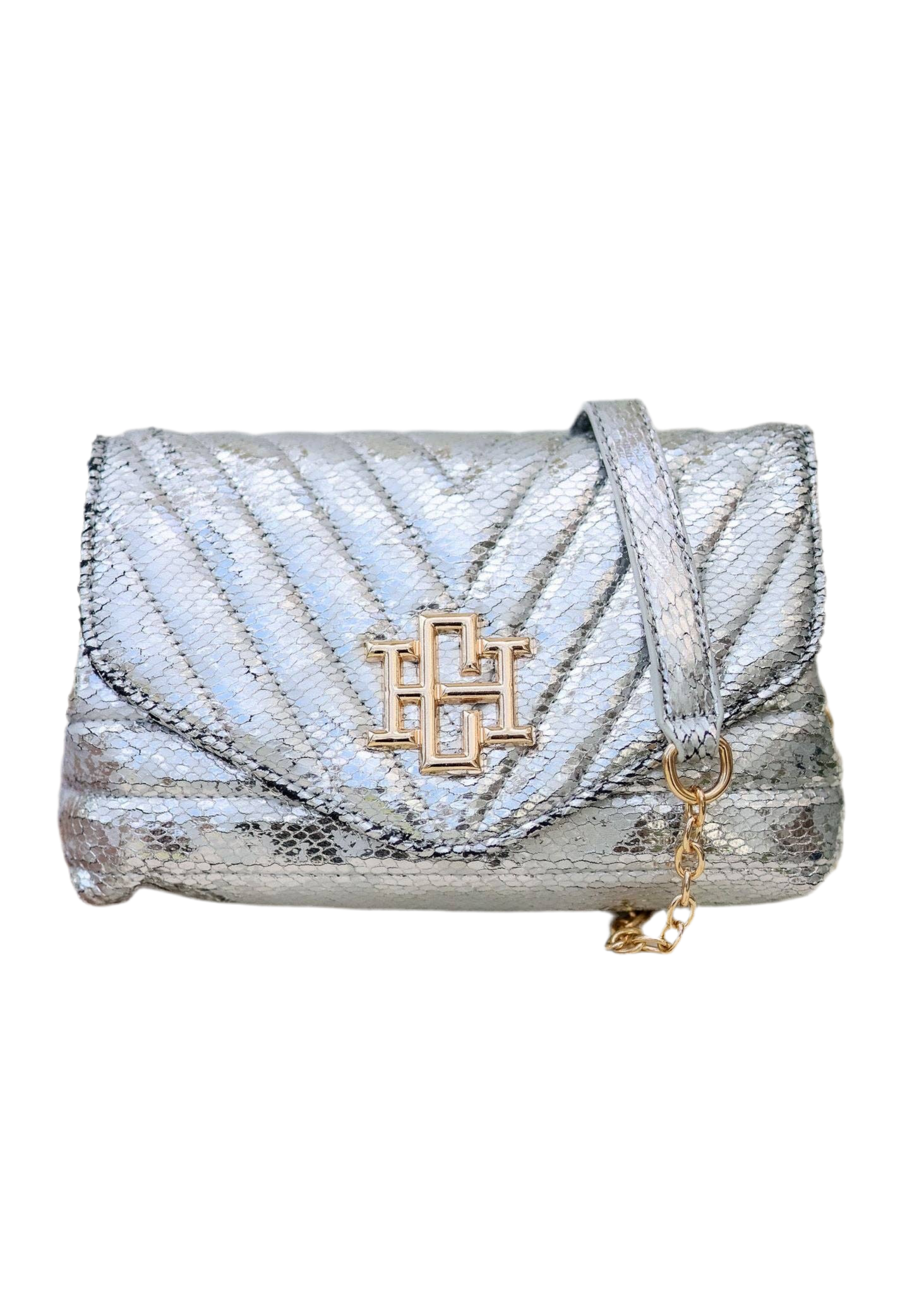 Brandy Crossbody SILVER FLECK | Metallic Quilted Handbag | She She's Closet