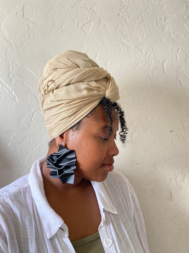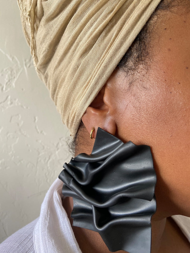 Gathered Earrings | Black Statement | Crumpled Earrings | Polymer Clay Jewelry | Crinkled Earrings | Modern Jewelry