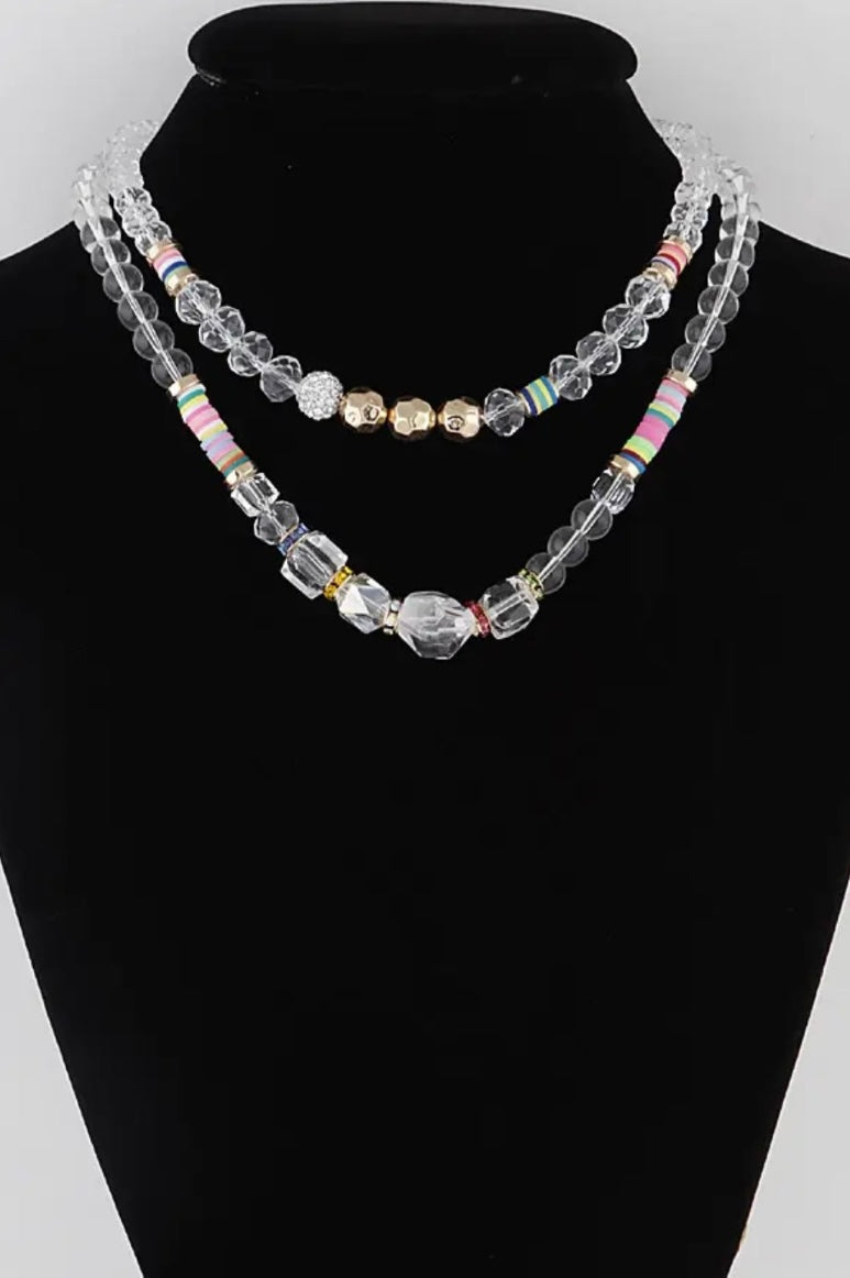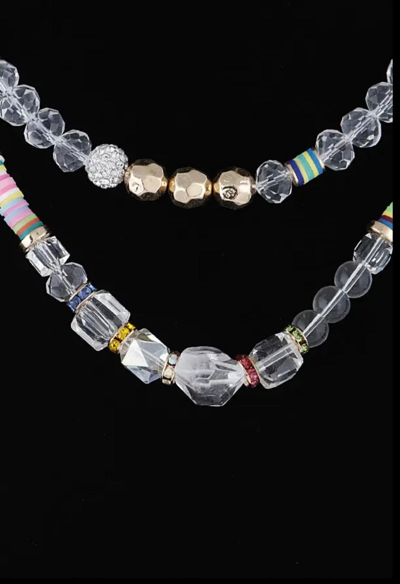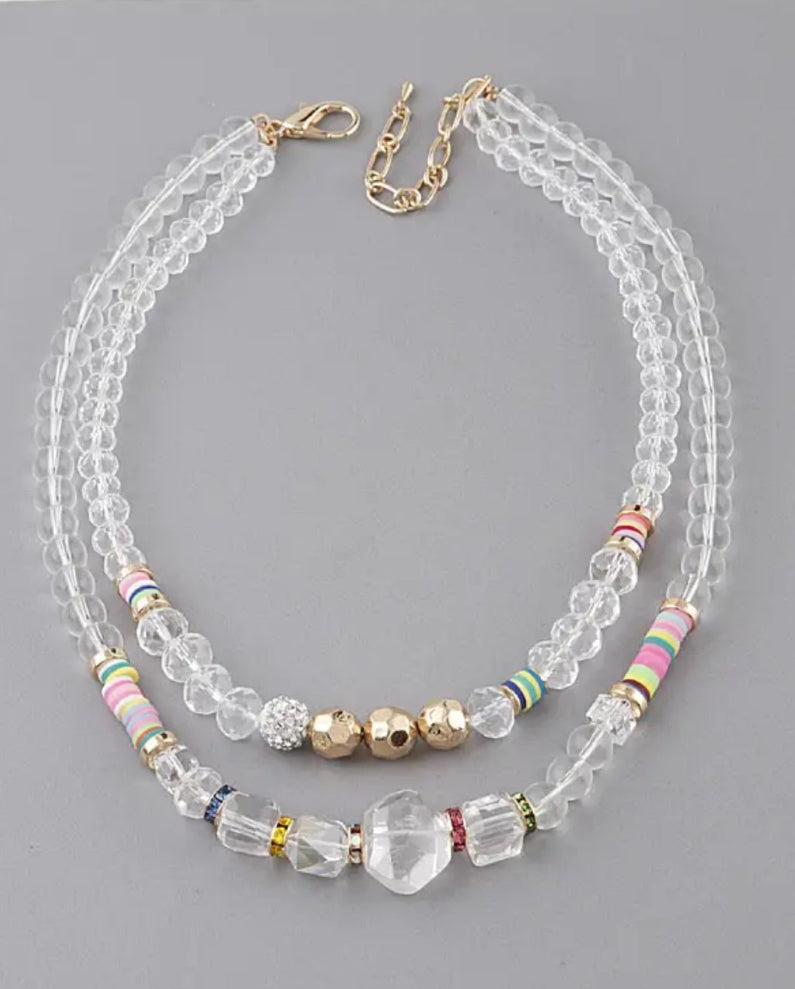 Clear Crystal Bead Necklace with Pops of Gold & Vibrant Colors