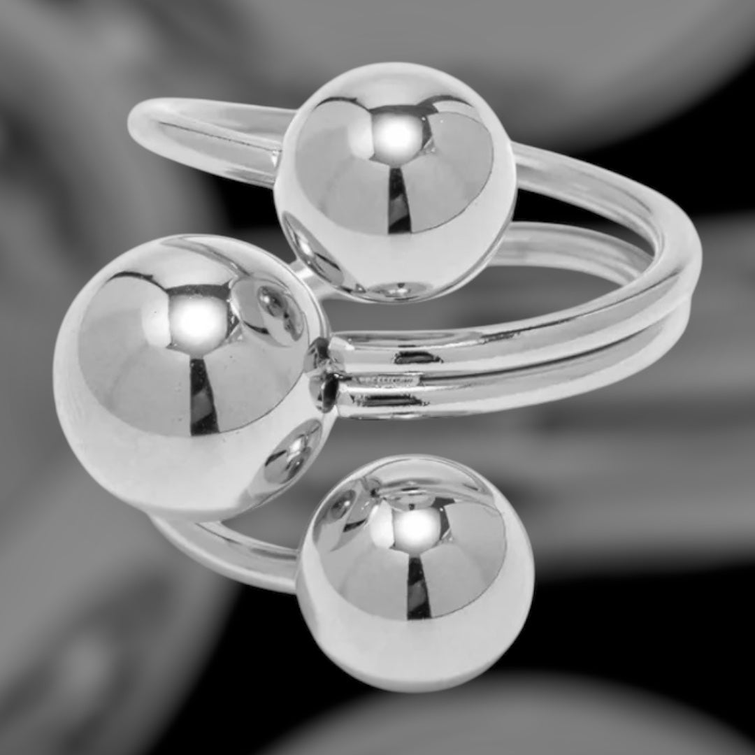 Crafted from high-quality, durable stainless steel, the Silver Droplet Ring features a unique design with slightly different sized steel balls. This distinctive style adds a touch of sophistication to any outfit, making it a must-have for daily wear. Elevate your look with this one-of-a-kind piece.