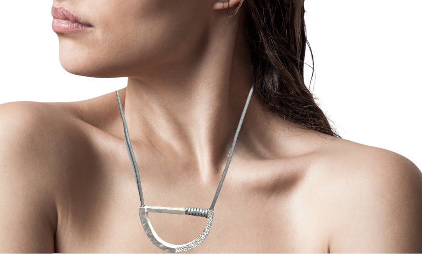 This Knotted Steel Necklace is expertly crafted using a unique mix of stainless steel and durable aluminum. Its gorgeous abstract design is sure to make a statement. The adjustable clasp and quality wax cord add practicality and durability to this elegant piece. Elevate your style with this stunning necklace.
