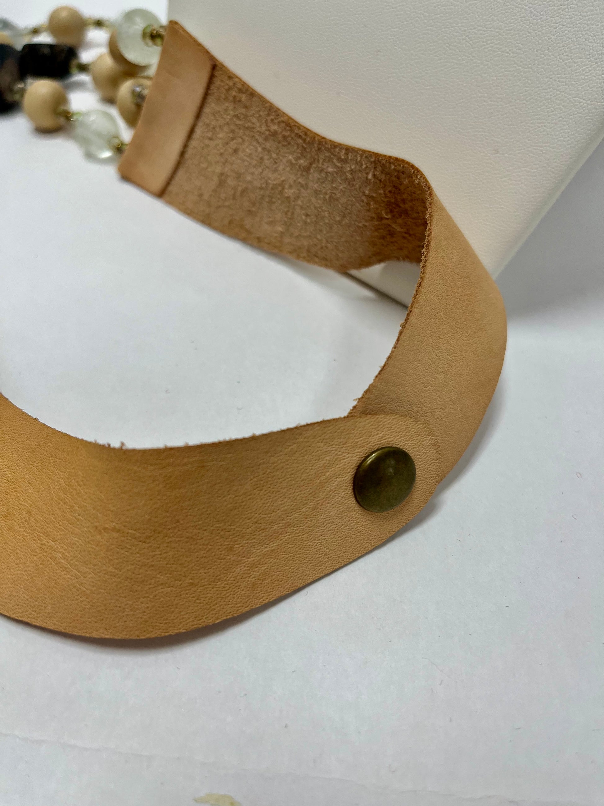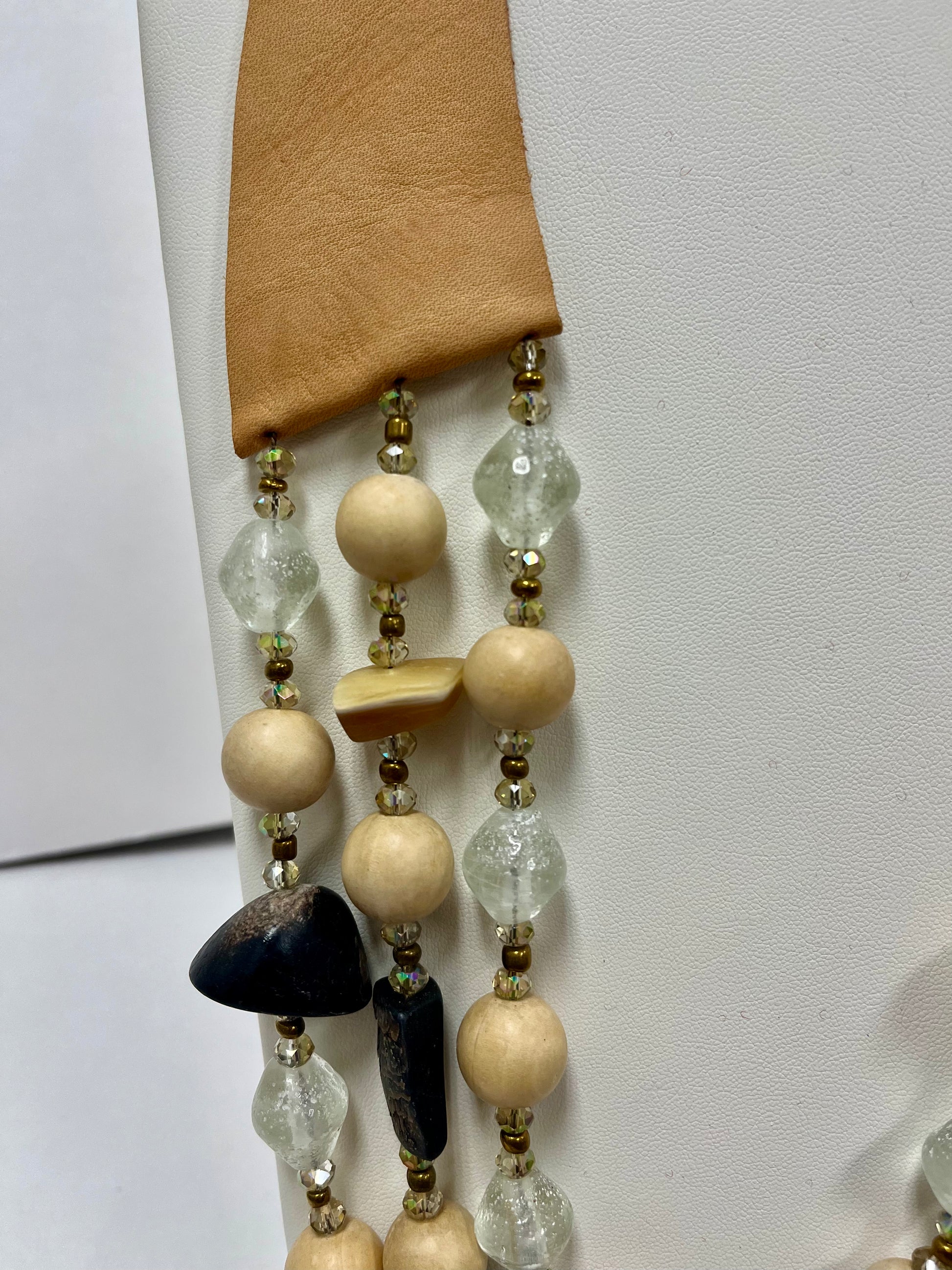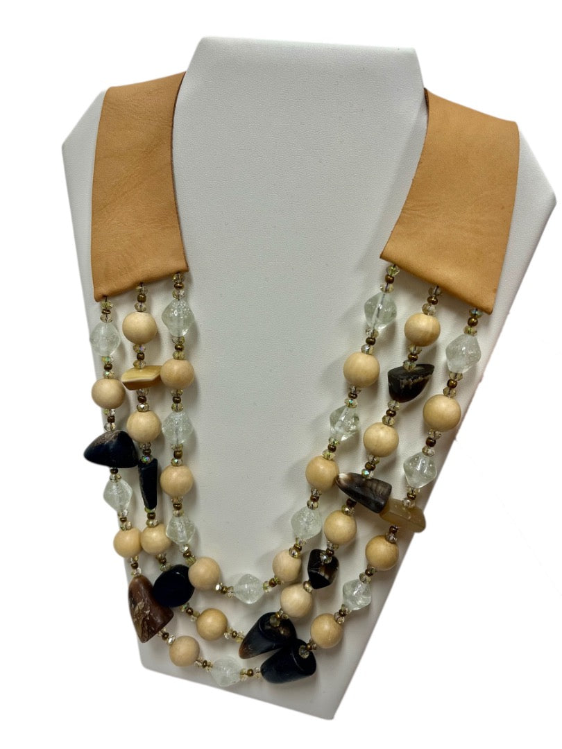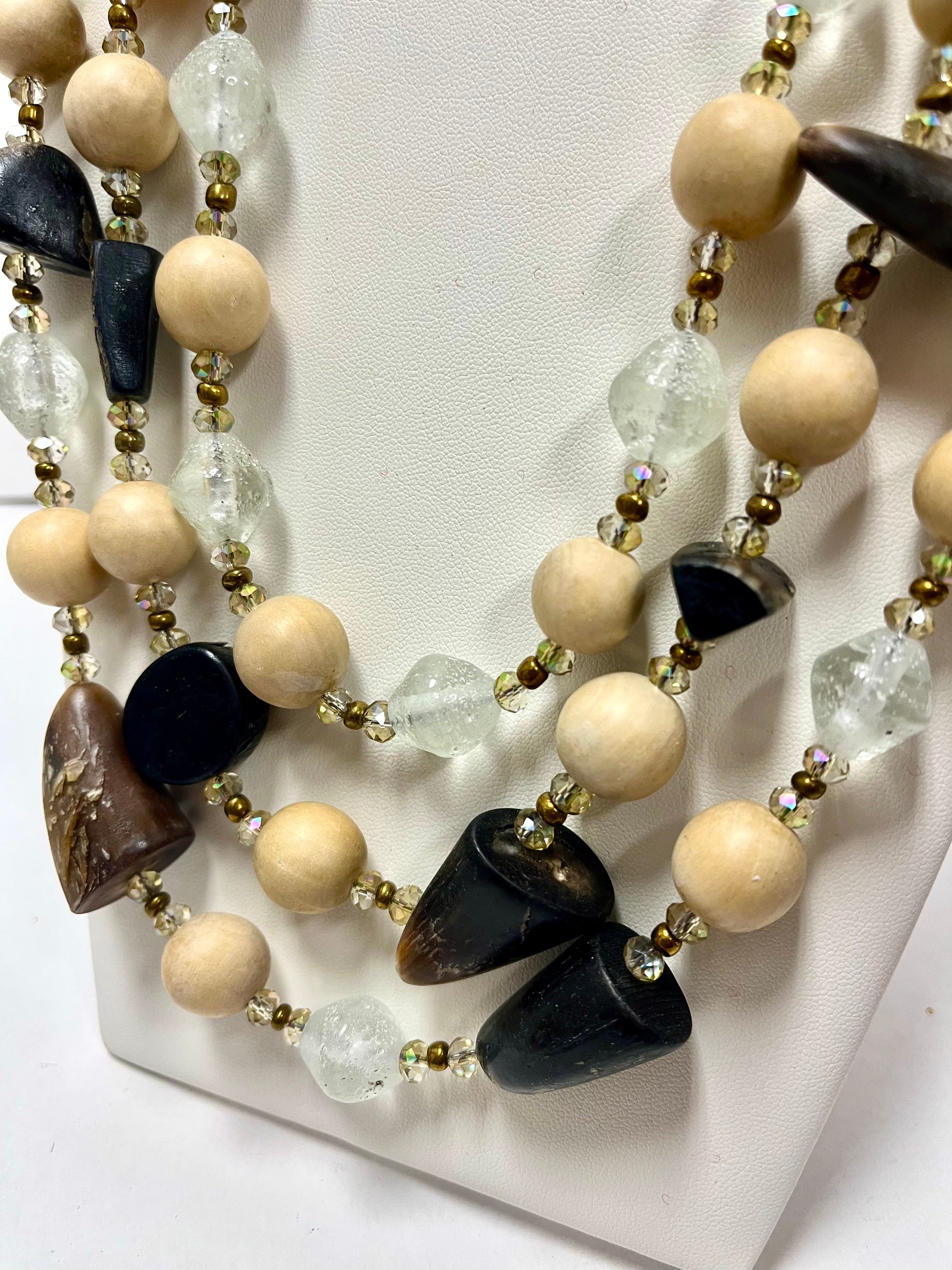 Introducing the Multi Strand African Buffalo Horn Beaded Necklace. Made with plush genuine leather and unique button clasp, this necklace features polished wooden beads and sparkling crystal accents. Designed with a multi-strand layout, it makes for the perfect statement piece while remaining lightweight and natural.