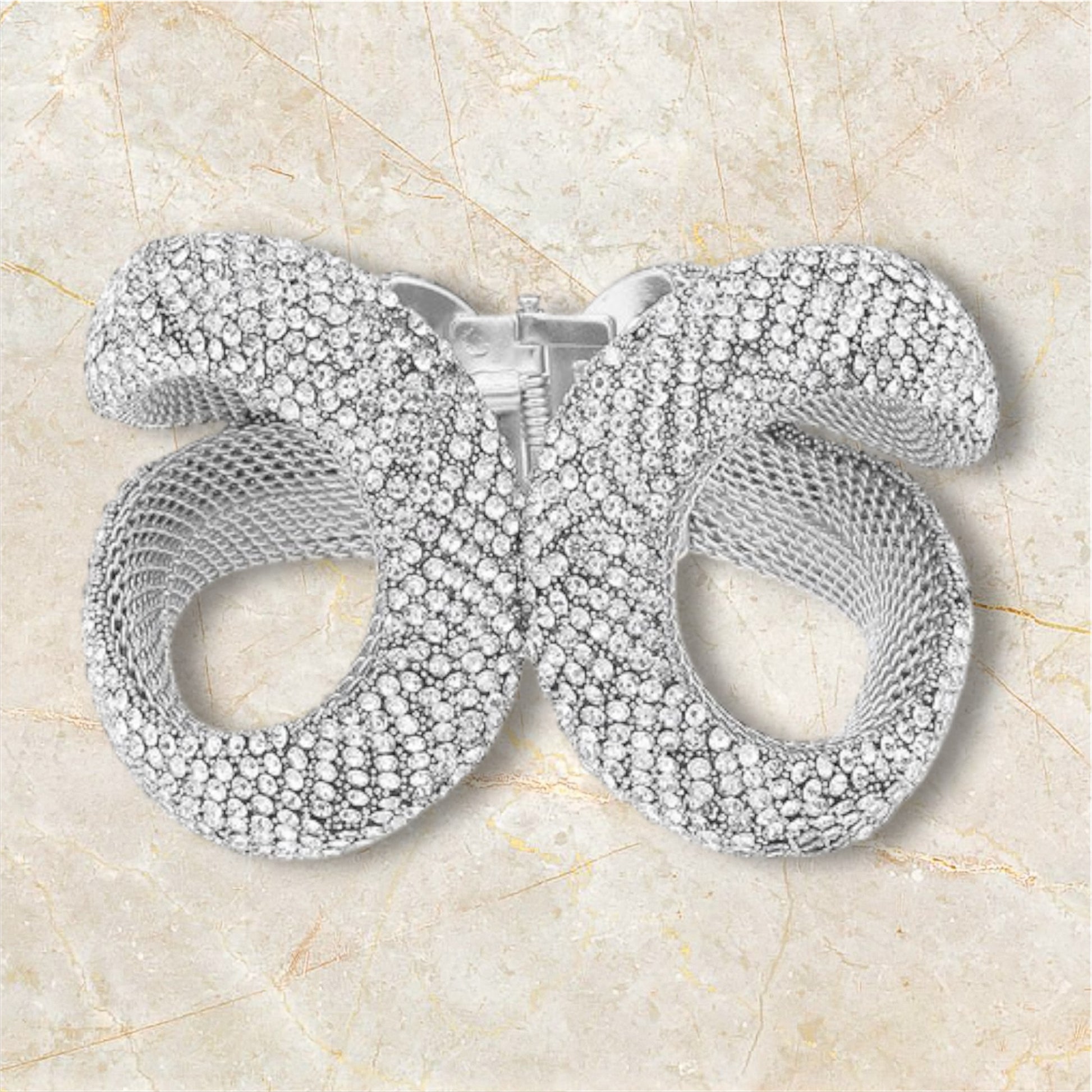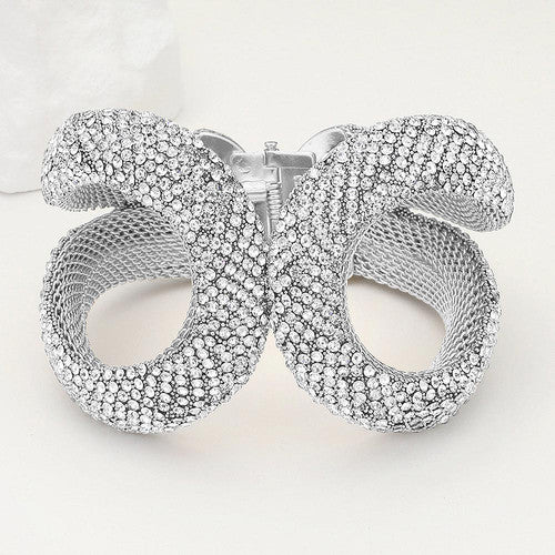 This Rhinestone Curve Crystal Cuff features a bold and unique design making it a standout piece that will elevate any outfit. Add a touch of elegance and sophistication to your look with this statement bracelet.