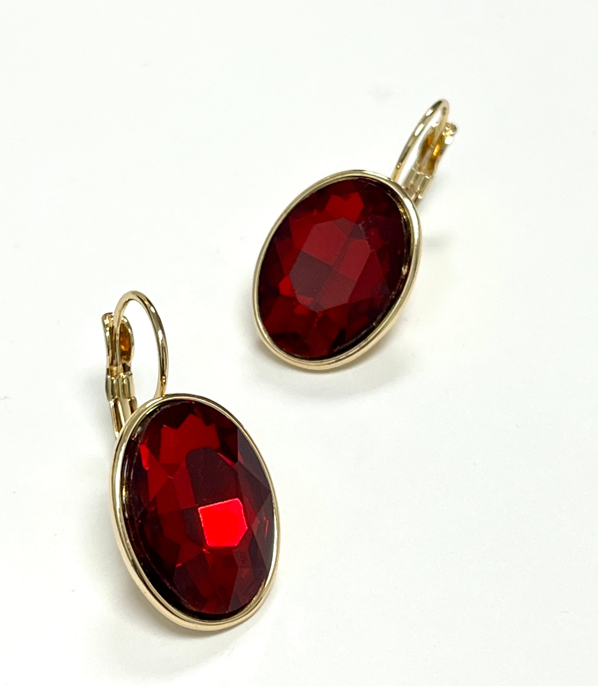 Expertly designed with stunning red crystals, these gold-plated brass earrings are the perfect addition to any outfit. The oval drop shape provides a classic and elegant look, making these earrings a versatile and must-have accessory. Elevate your style with these stunning red crystal earrings.