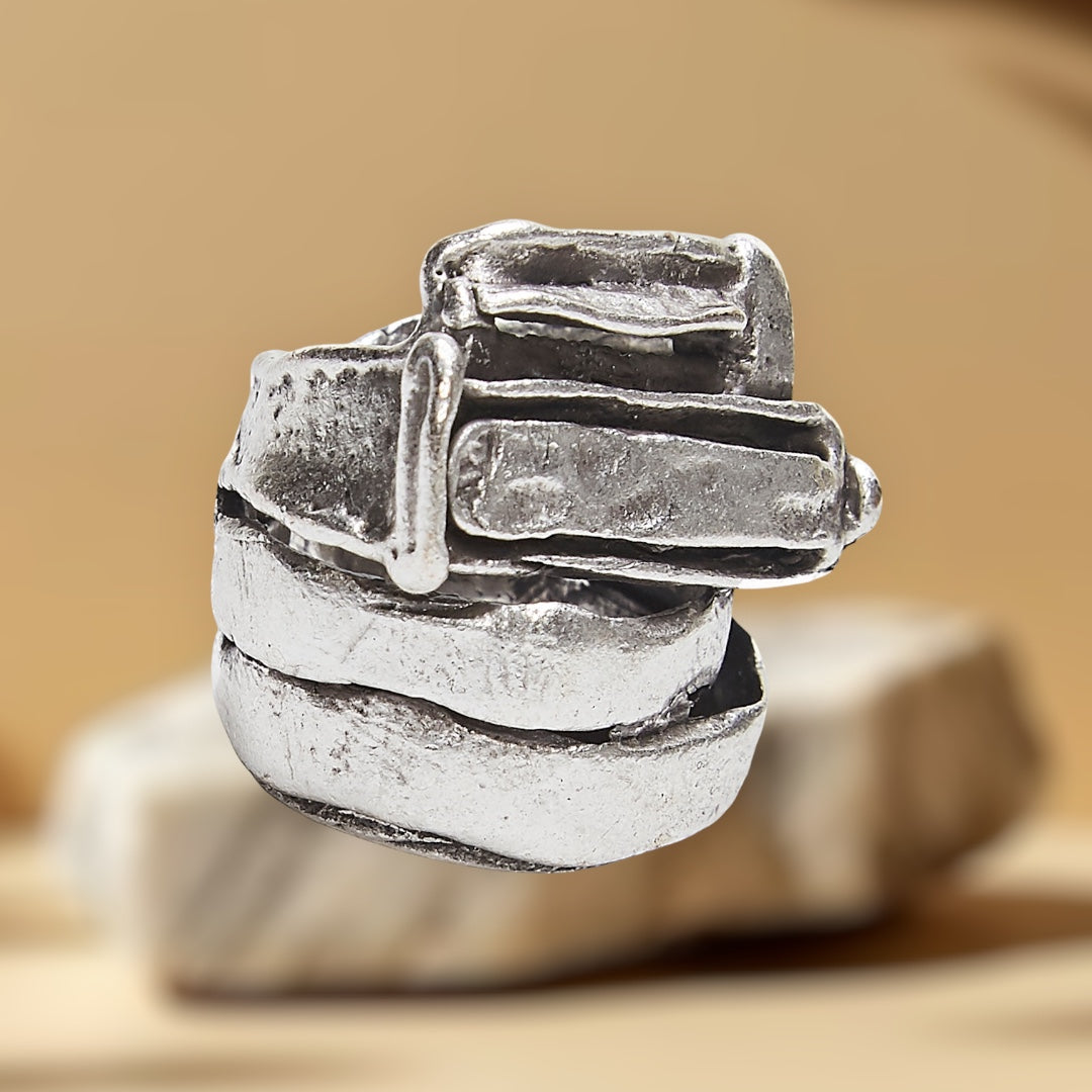 Complement your style with our Layered Buckle Ring. Made with hypoallergenic and nickel-free materials, it's perfect for those with sensitive skin. The adjustable design ensures a comfortable fit for all finger sizes. Its beautiful 925 silver plating adds a lustrous, high-quality finish.