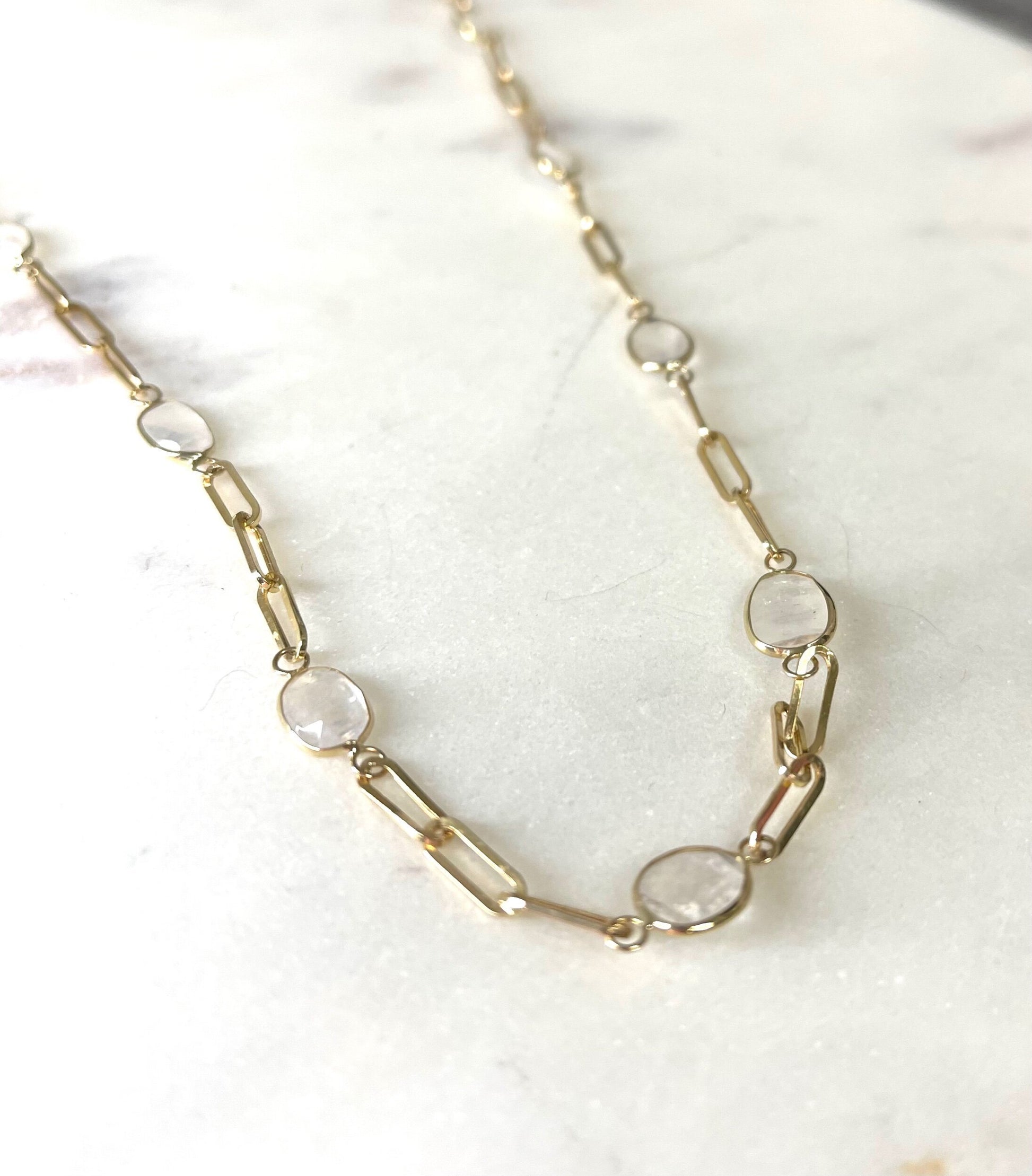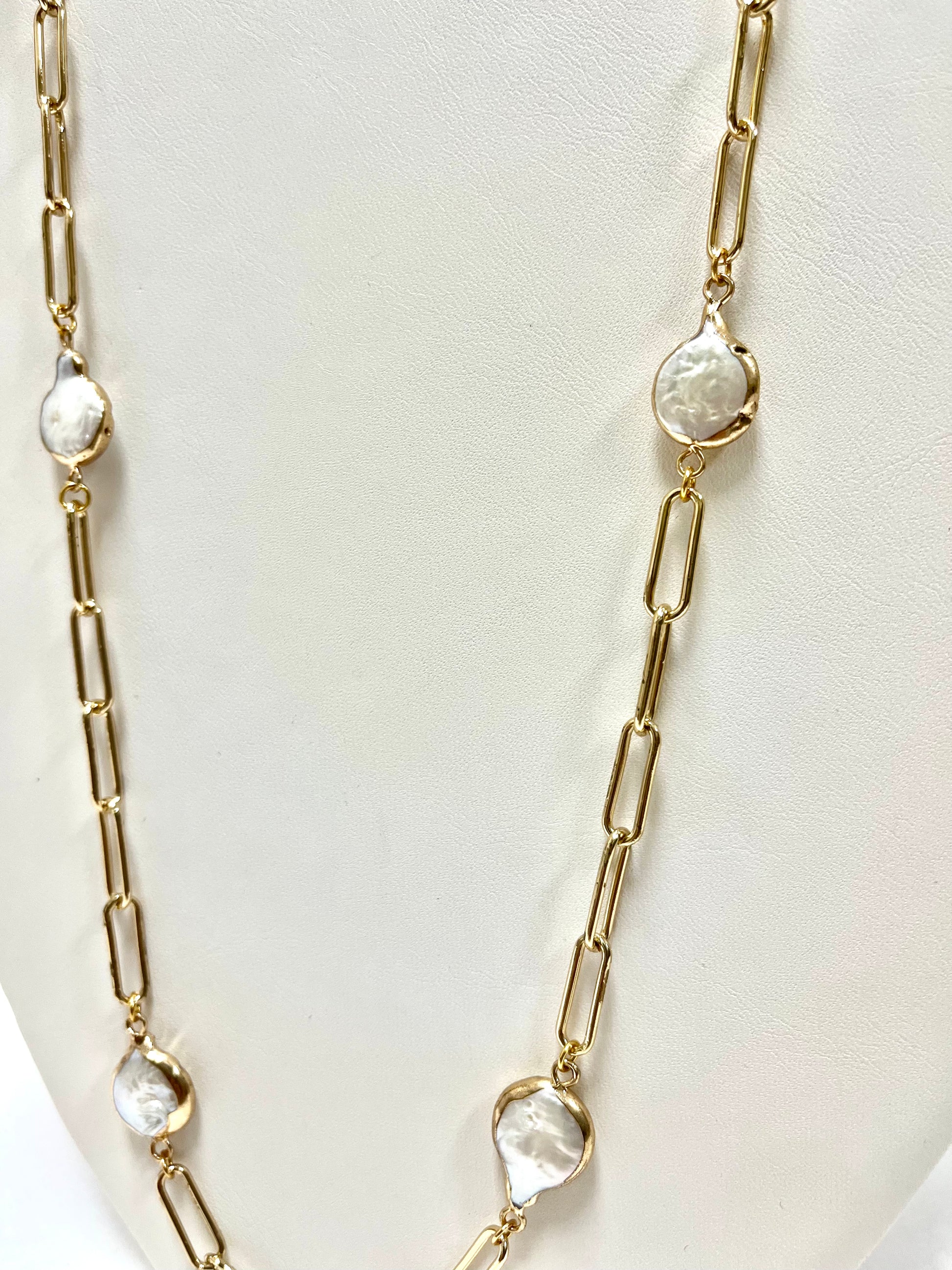 Expertly crafted with genuine, uniquely-shaped pearl beads, this Mother of Pearl Chain Link Necklace adds a touch of elegance to any outfit. The long design allows for layering or wearing alone, making it a versatile piece for any occasion. Elevate your style with this beautifully dipped necklace.