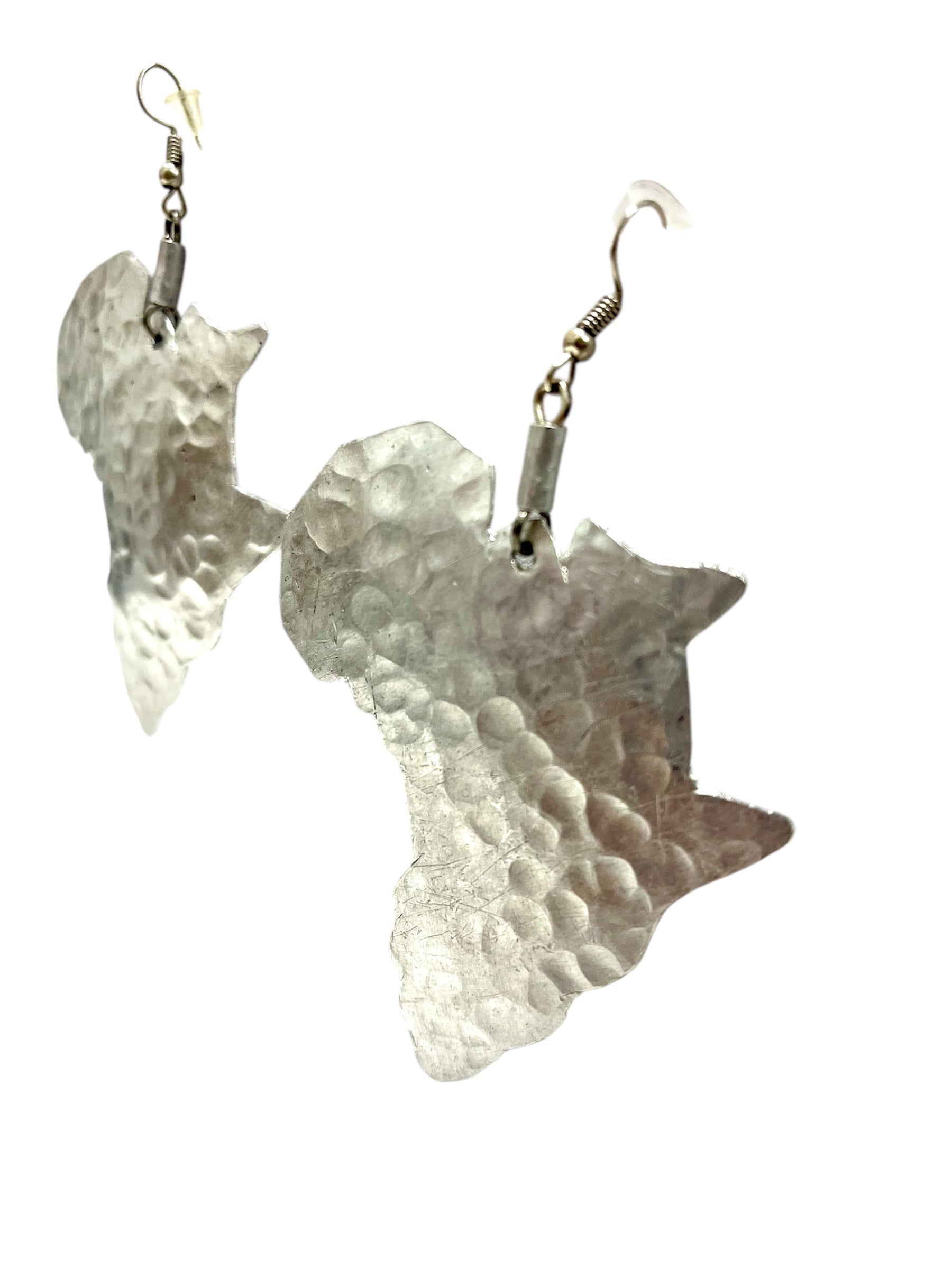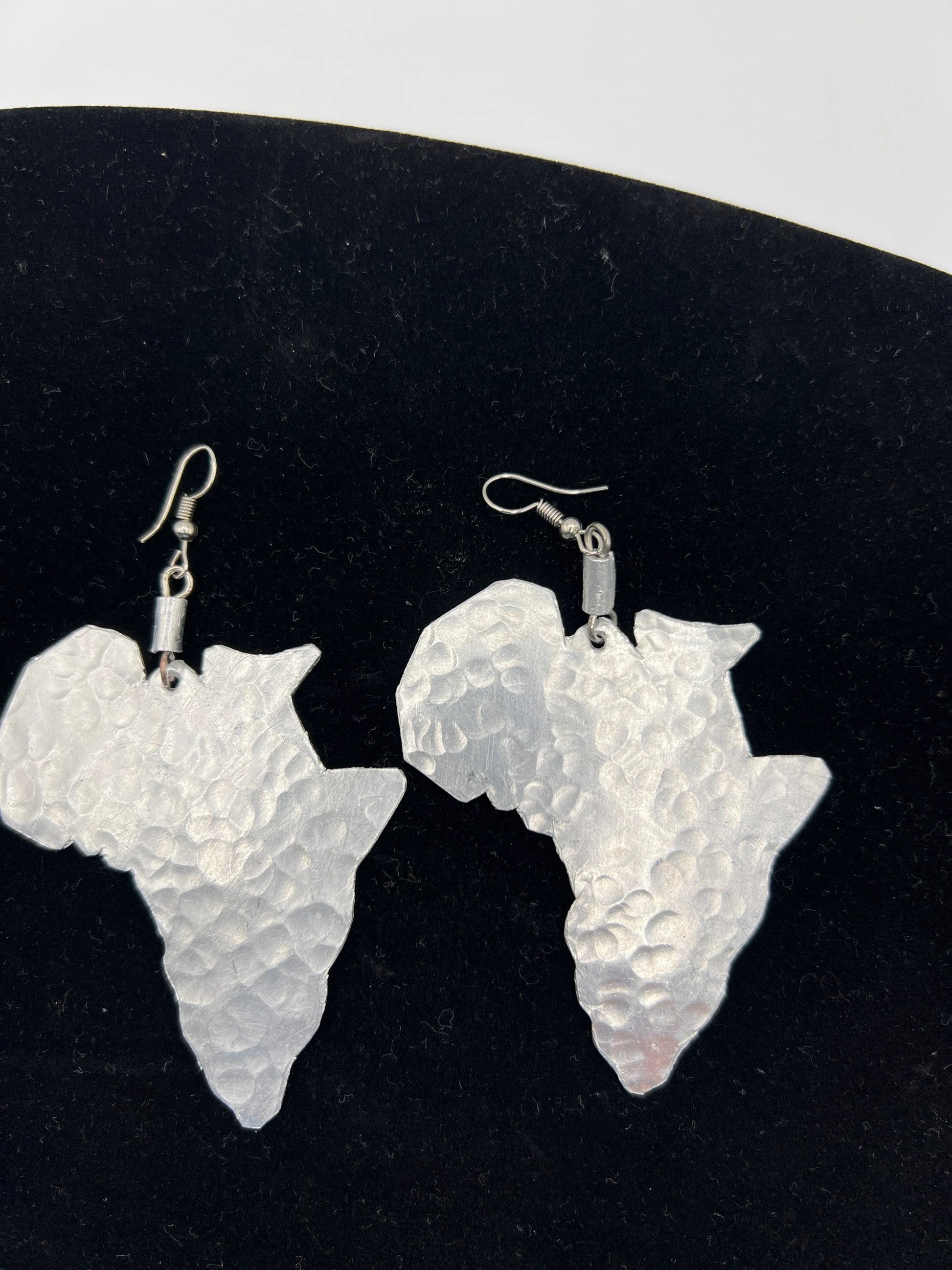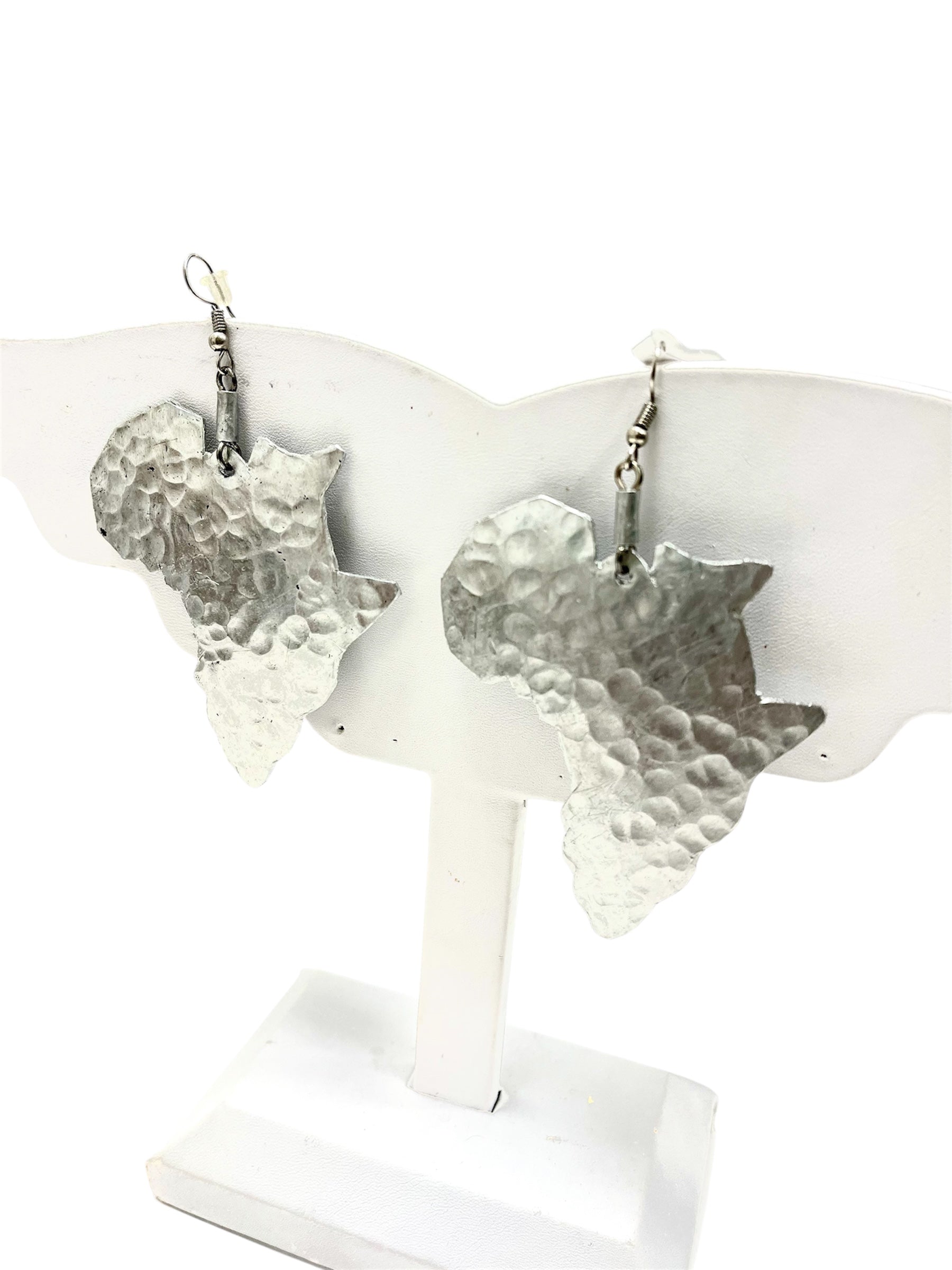 Expertly crafted from premium quality aluminum, these Map of Africa earrings feature a hand hammered design for added texture. With their lightweight construction, you can enjoy the bold and intricate look without worrying about them weighing your ears down. Elevate your style with these unique and stylish earrings.