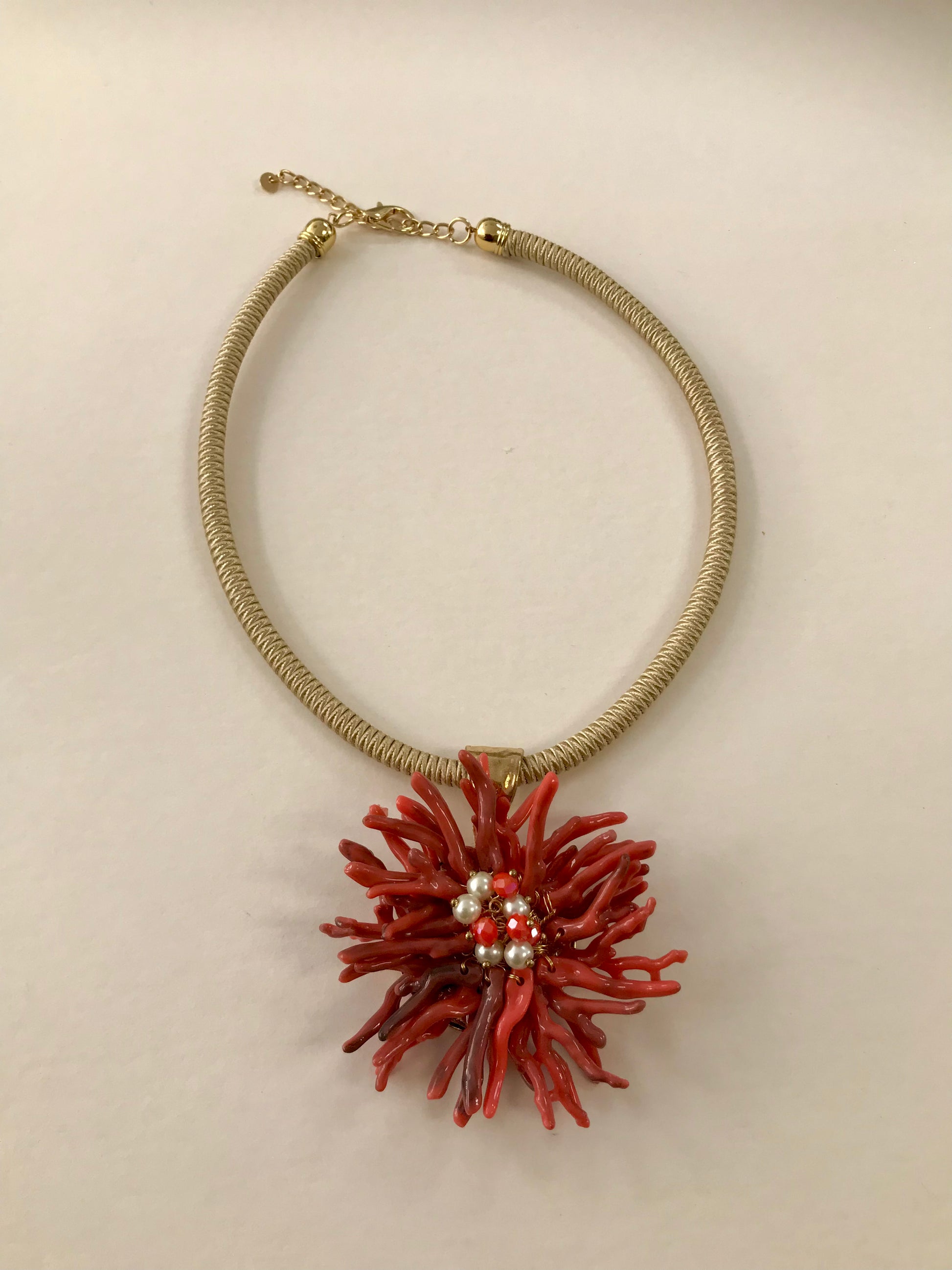 Coral Necklace With Faux Pearl Inset