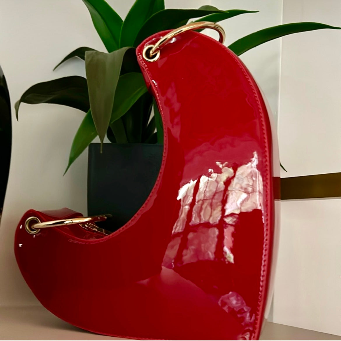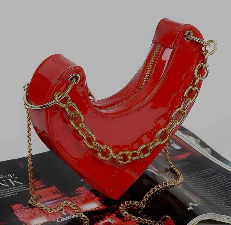 Elevate your style with our Heart Shaped Handbag. Made from high-quality faux leather, this beauty features a patent leather effect and asymmetric detailing. Perfect for Valentine's Day, it also comes with detachable chain handles for added versatility. Make a statement with this must-have accessory.
