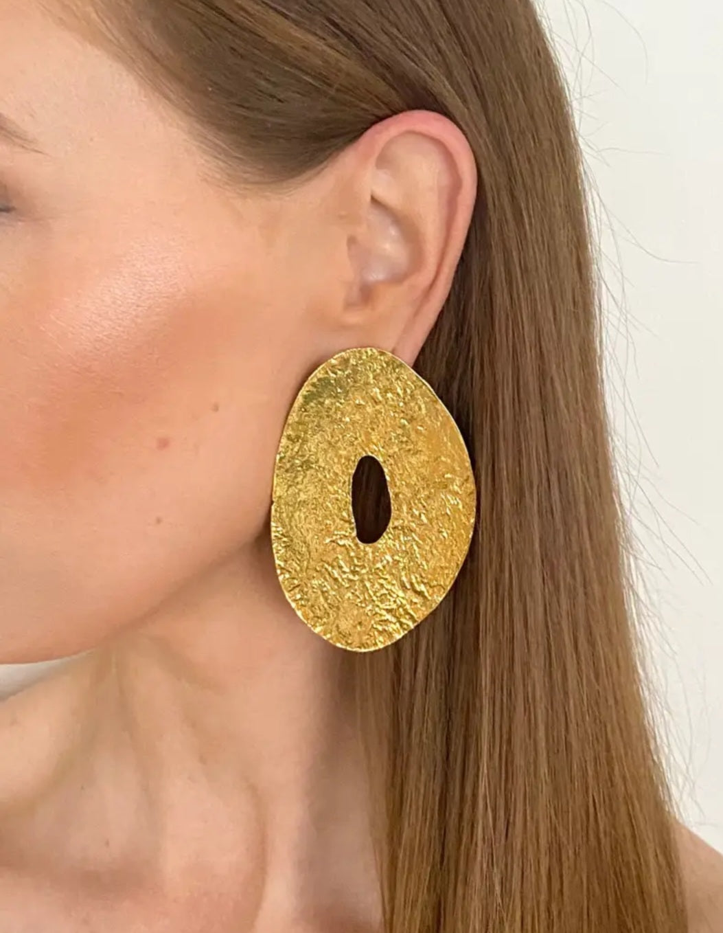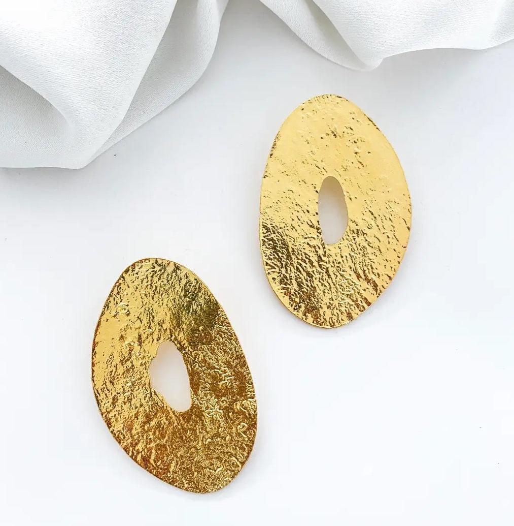 Large Gold Oval Statement Earrings – Lightweight Bold Oval Design for Modern Fashion