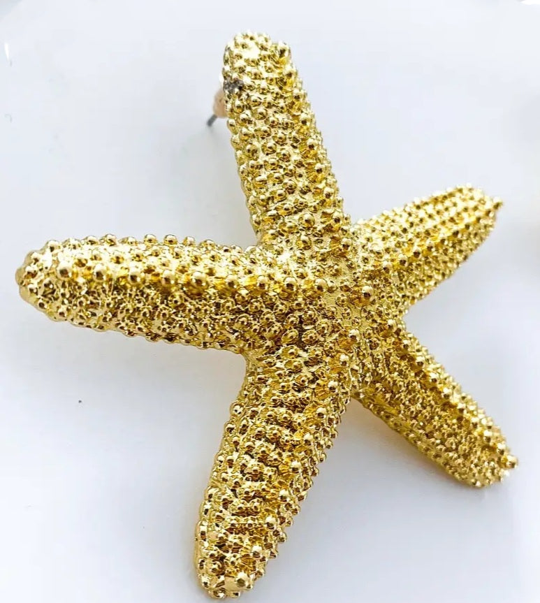The Statment Starfish Gold Earrings are the perfect addition to your wardrobe. Bold eye-catching design. These statement earrings are sure to make a lasting impression. Crafted from high-quality materials.Stylish and durable, elevate your outfit with these head-turning Starfish.