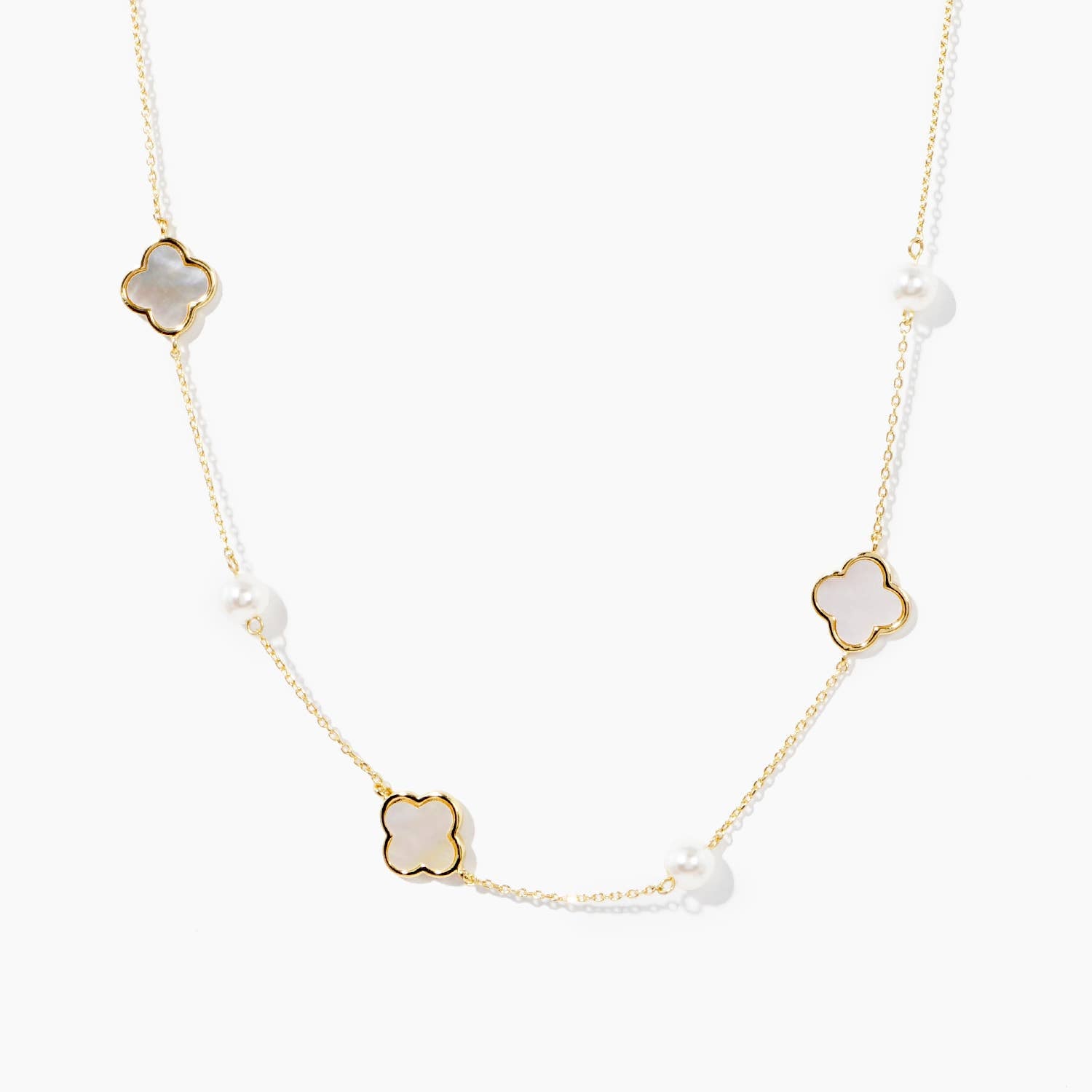 * Lucky Clover mother of pearl Necklace / Minimalist Four Leaf *
