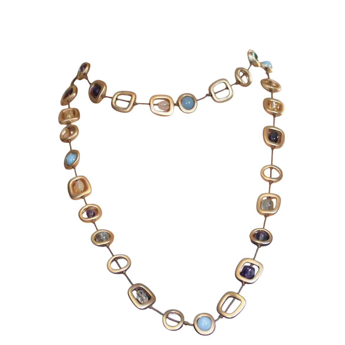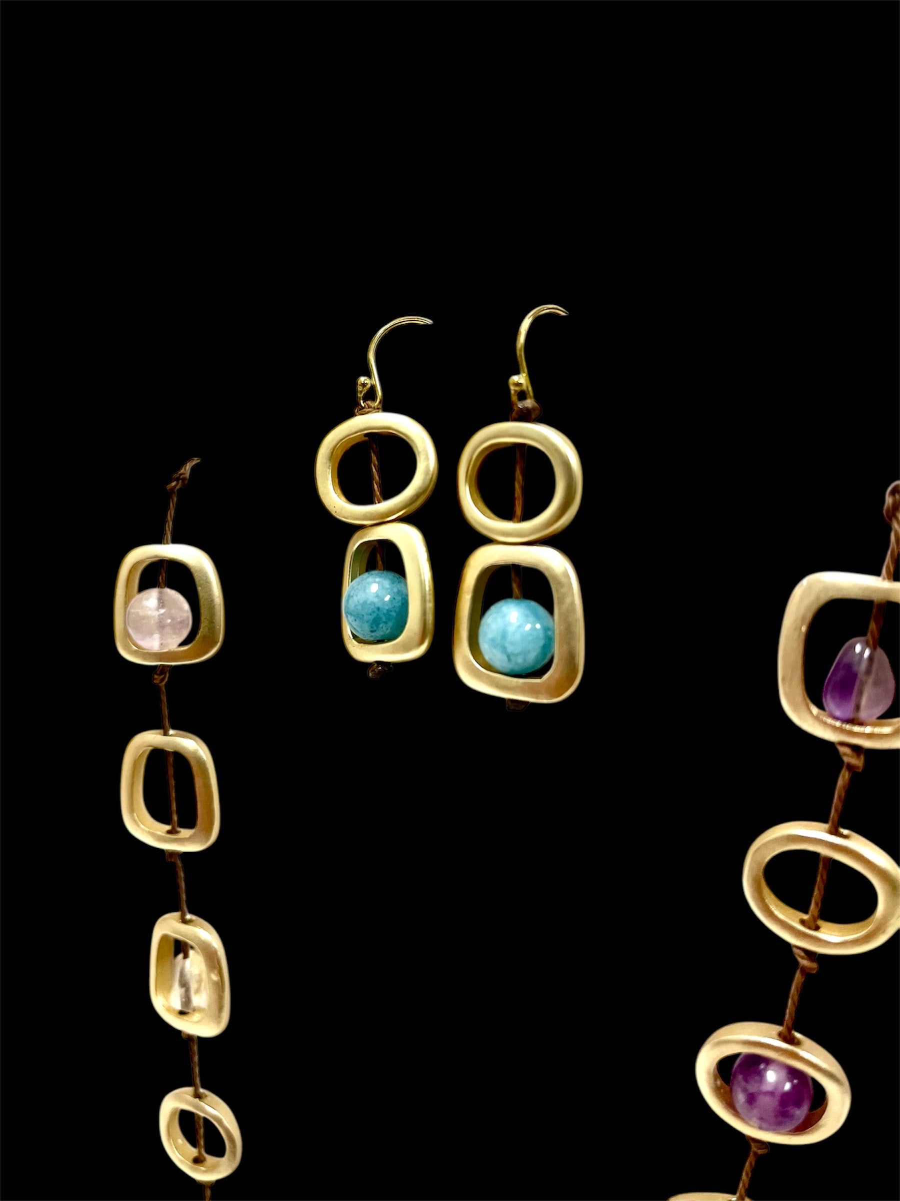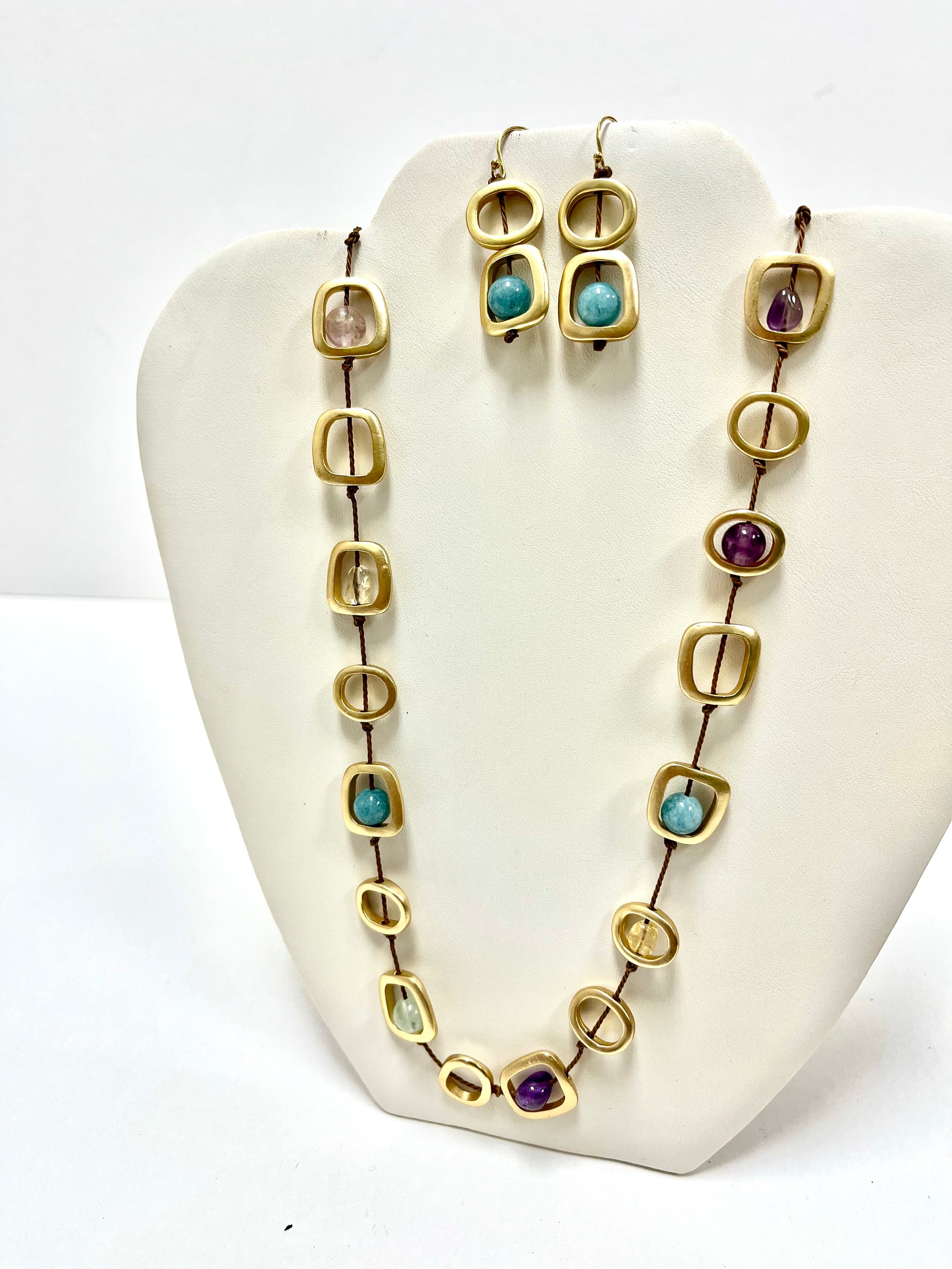 This hand knotted design features real gemstones and brushed gold metal for a sophisticated look. Versatile styling options allow for a wrap or long necklace. Enhance your outfit with this natural gemstone necklace set