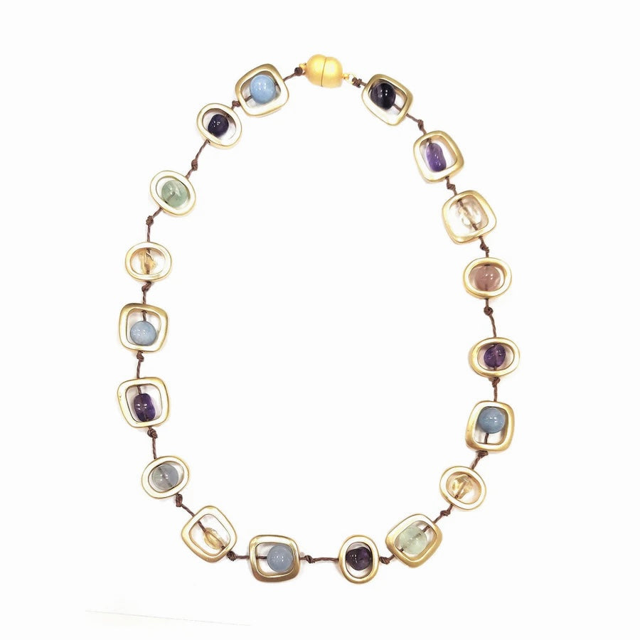 - Accented with mix natural stone beads of amethyst, citrine and aventurine hues