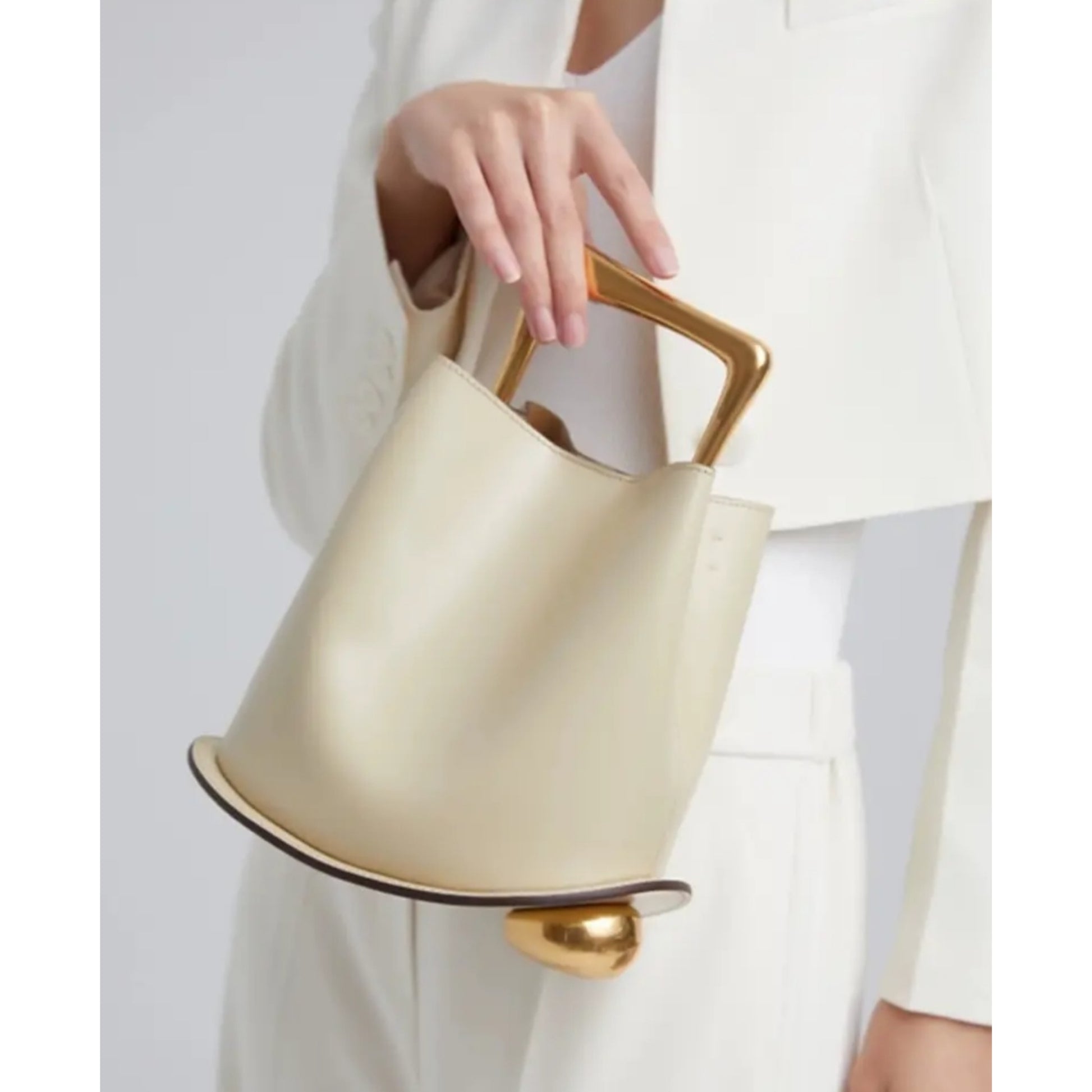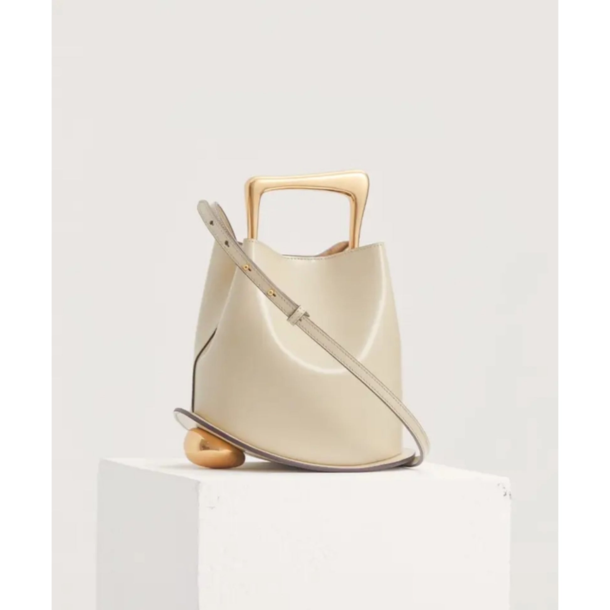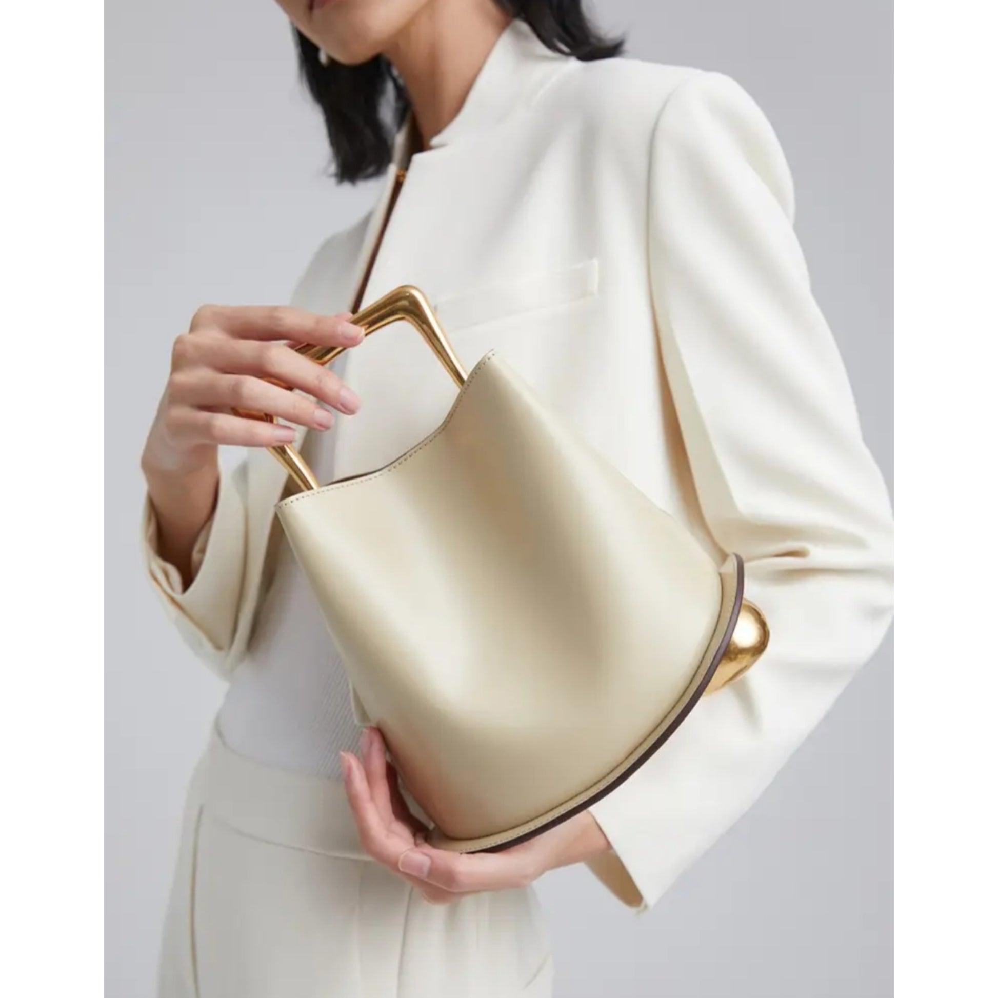 Introducing our exquisite limited edition Ozzy Bag now, available in Latte and Gold. Crafted with luxurious leather and adorned with opulent golden elements. This bag radiates timeless sophistication. Gracefully curved base was inspired by the feminine silhouette and nature's natural shapes. With an adjustable strap. This bag is the embodiment of luxury.
