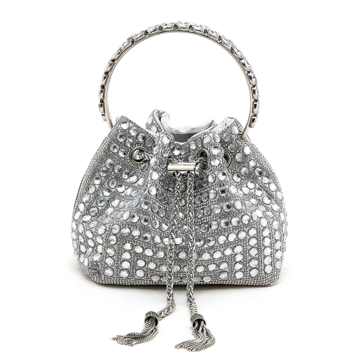 Expertly crafted with precision and elegance, the Petit Silver Crystal Bejeweled Evening Bag is the perfect accessory for any formal occasion. Made with sparkling crystals and a sturdy silver frame, this bag adds a touch of glamour and sophistication to any outfit. Get ready to turn heads and make a statement with this exquisite evening bag.