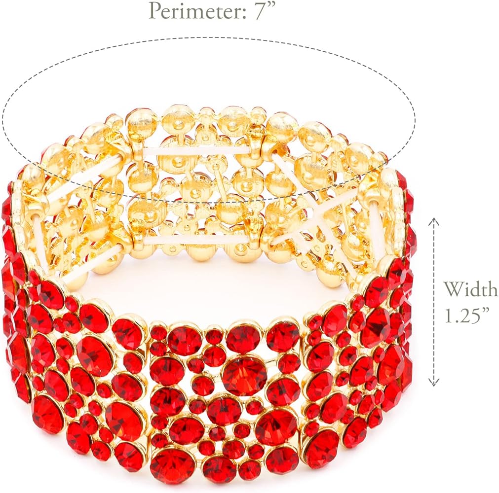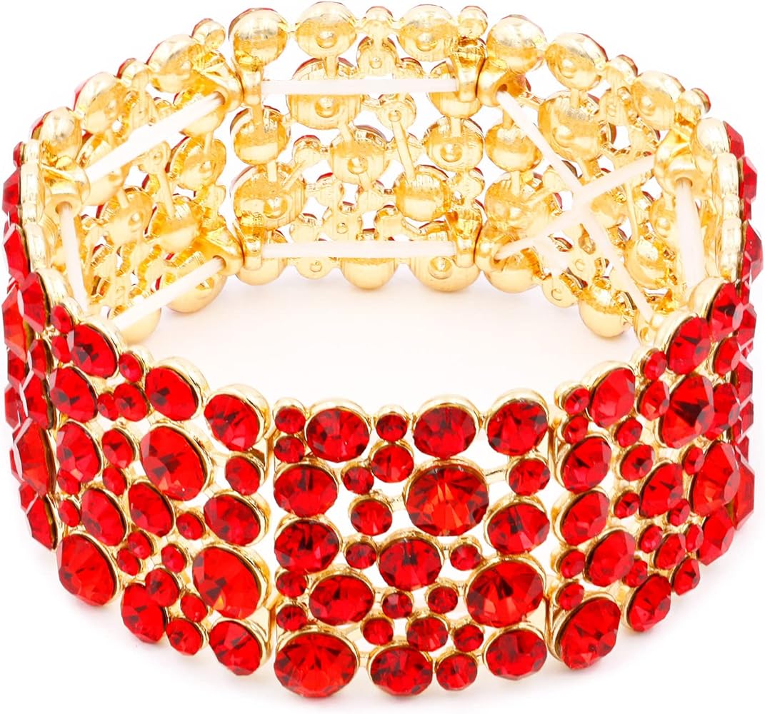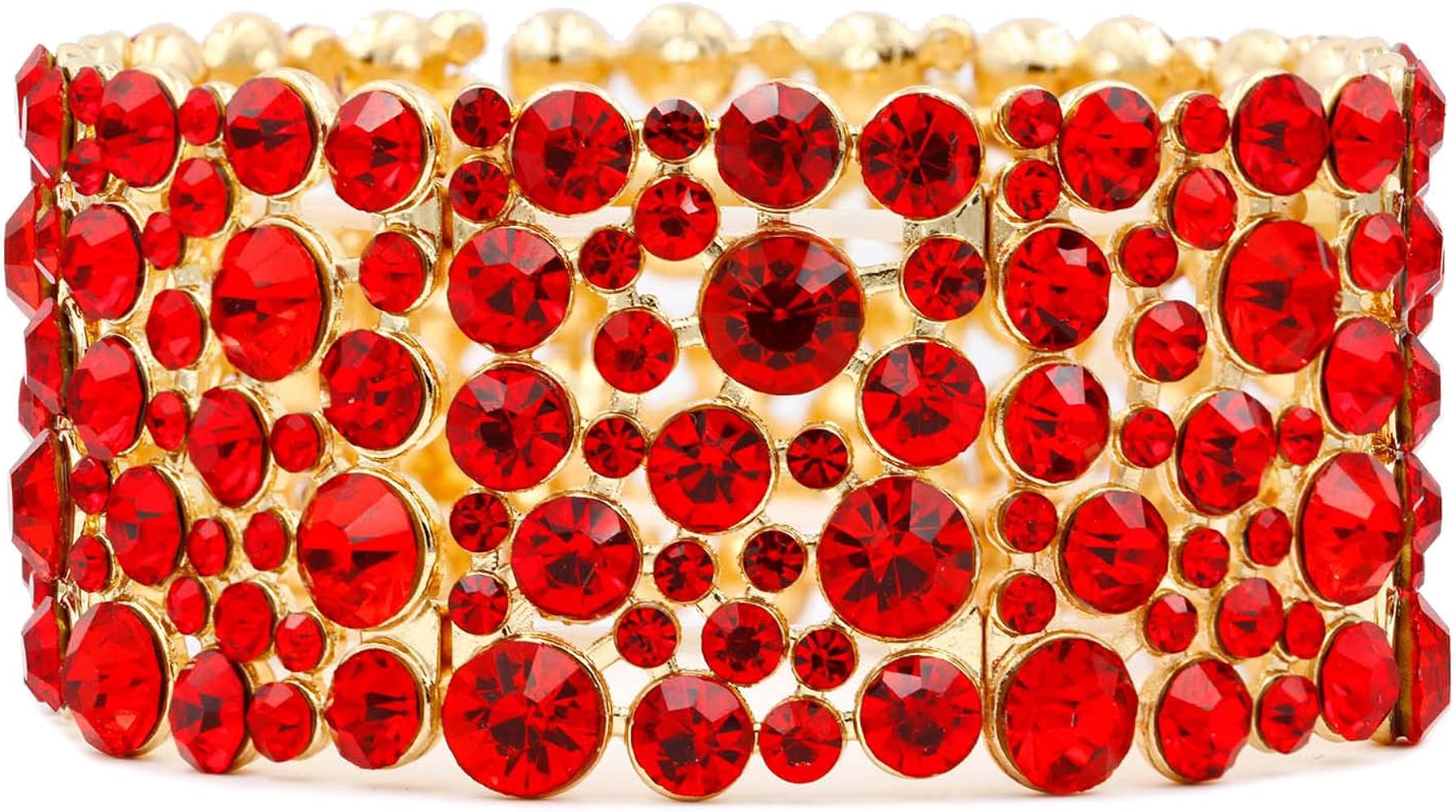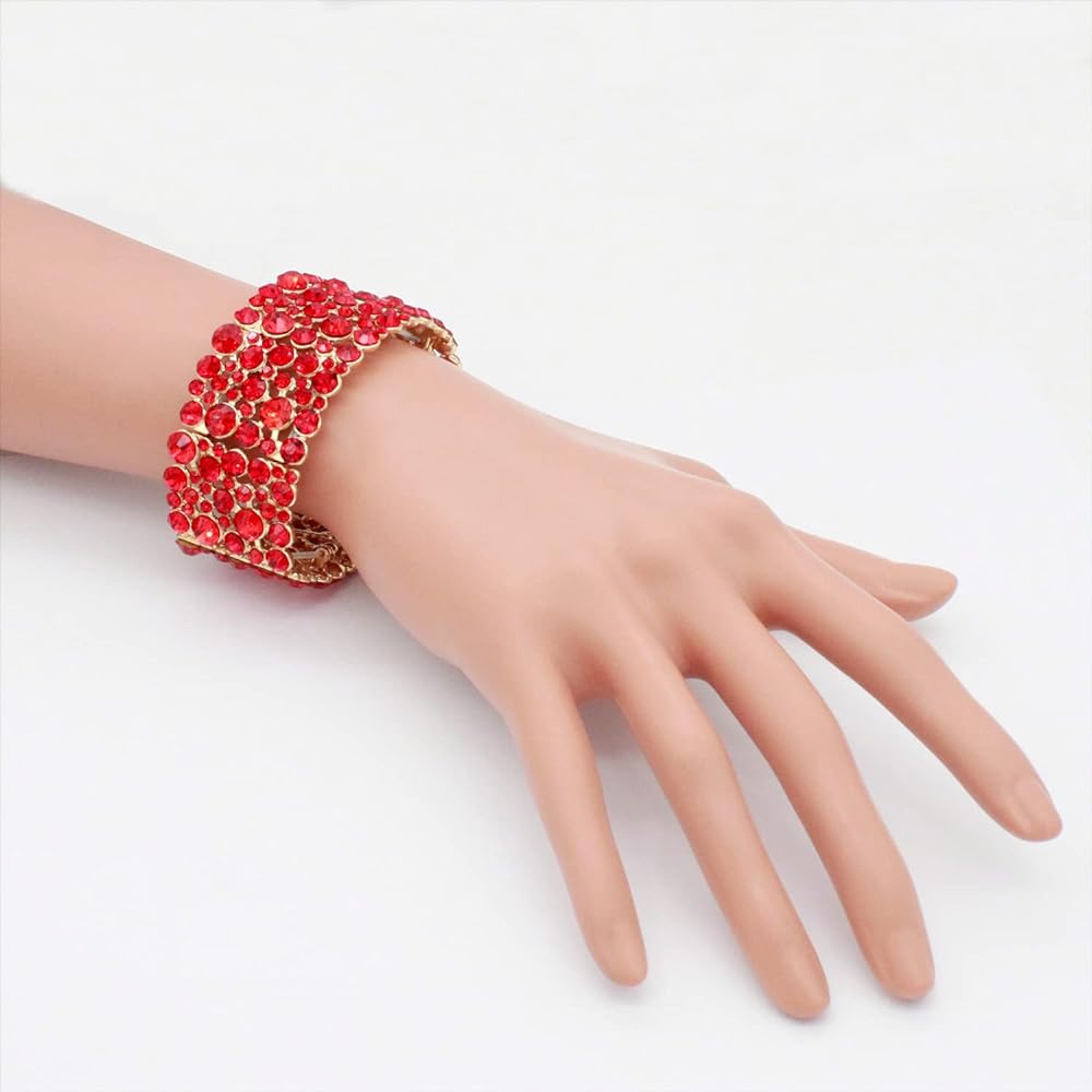 This Red Rhinestone Cuff Bracelet features a luxurious zinc metal design adorned with lavish crystals.