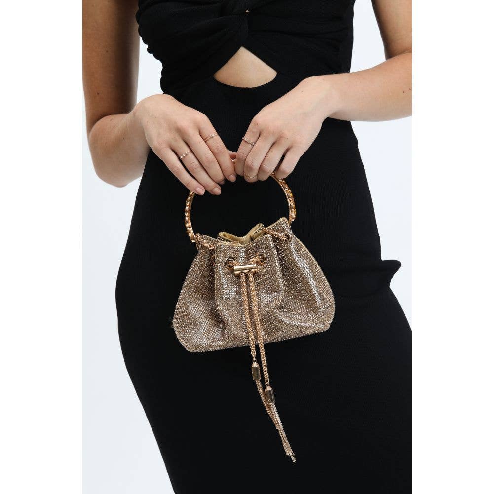 Embrace the spotlight with our Rhinestone Evening Bag - it's not just an accessory, it's a showstopper. Draped in all-over rhinestones and accented with elegant tassels, this dazzling drawstring bucket silhouette, lined with luxurious fabric, takes the phrase 'shine bright like a diamond' to a whole new, portable level. *Item Type: Evening Bag *Material: Rhinestones *Closure: Drawstring *Exterior Details: Rhinestones All-over, Tassels, Bucket Silhouette *Interior Details: Fabric Lined