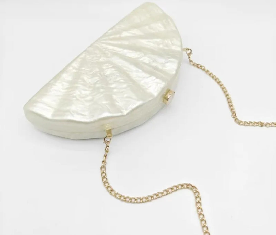 Embrace a new level of style with our Vibrant Iconic Shell Acrylic Clutch Bag, where functionality colours fabulousness!