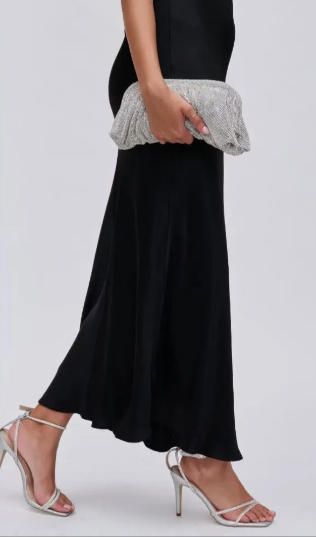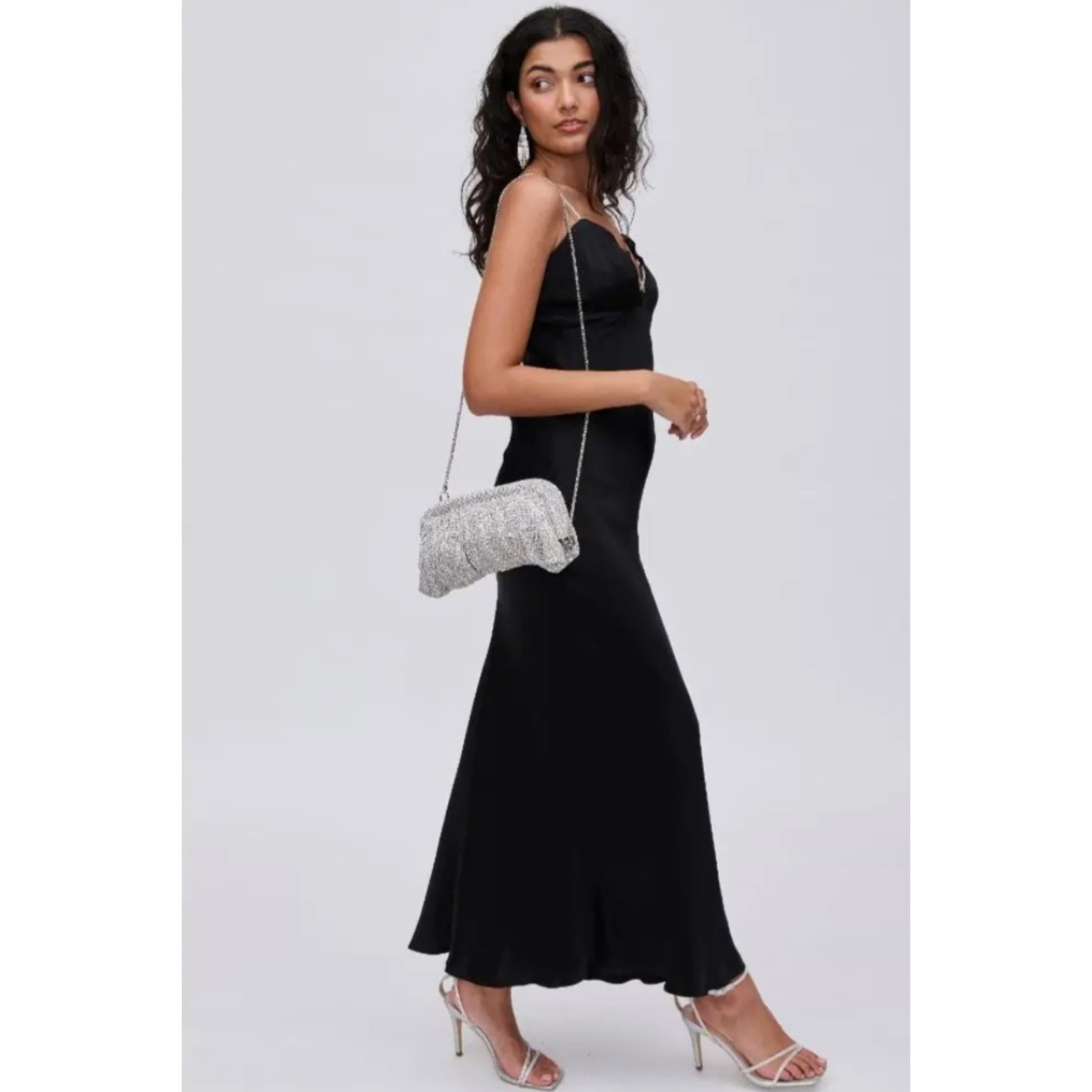 Shine bright like a diamond with our dazzling Irina Evening Bag! Made with high-quality rhinestones and sturdy silver hardware. This bag is sure to turn heads at any event. The snap frame closure ensures your belongings are secure. While the the fabric-lined interior provides a soft touch for your essentials.