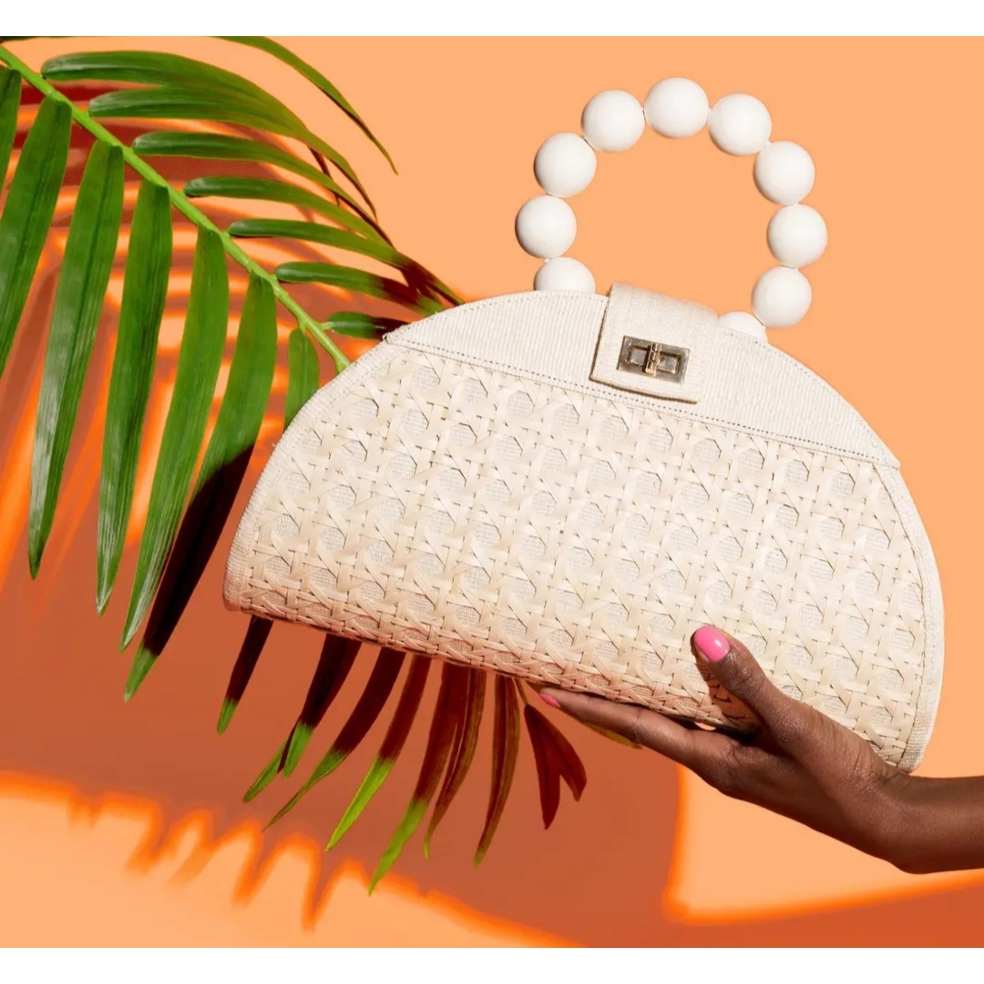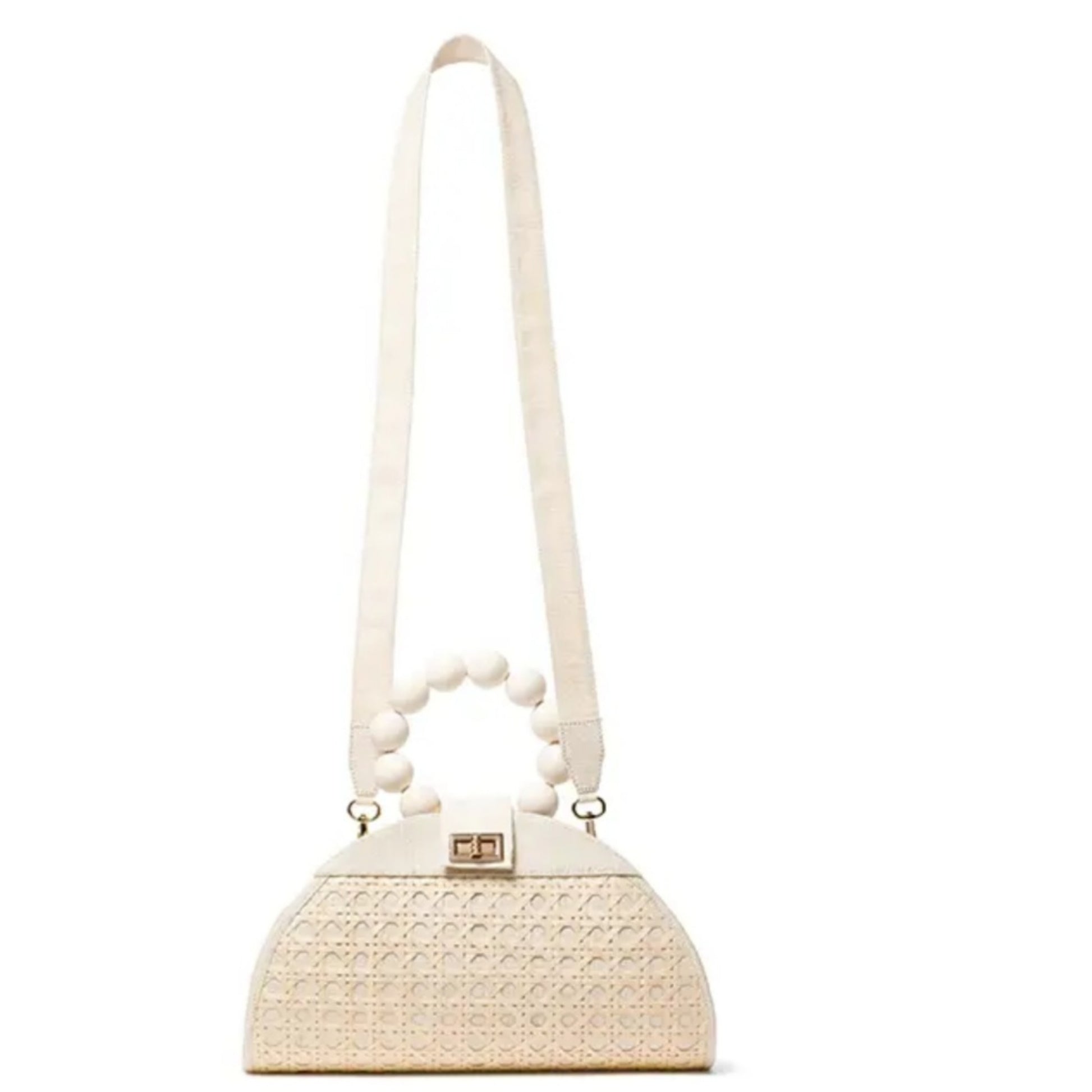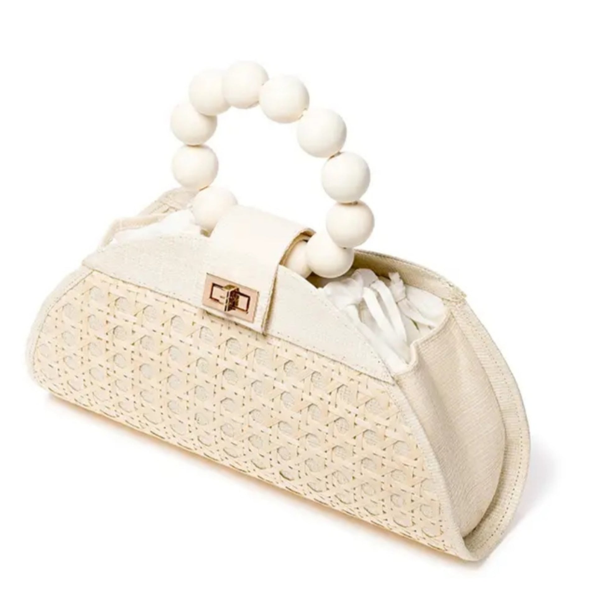 Woven Cream Rattan & Bead Statement Handbag Handbag