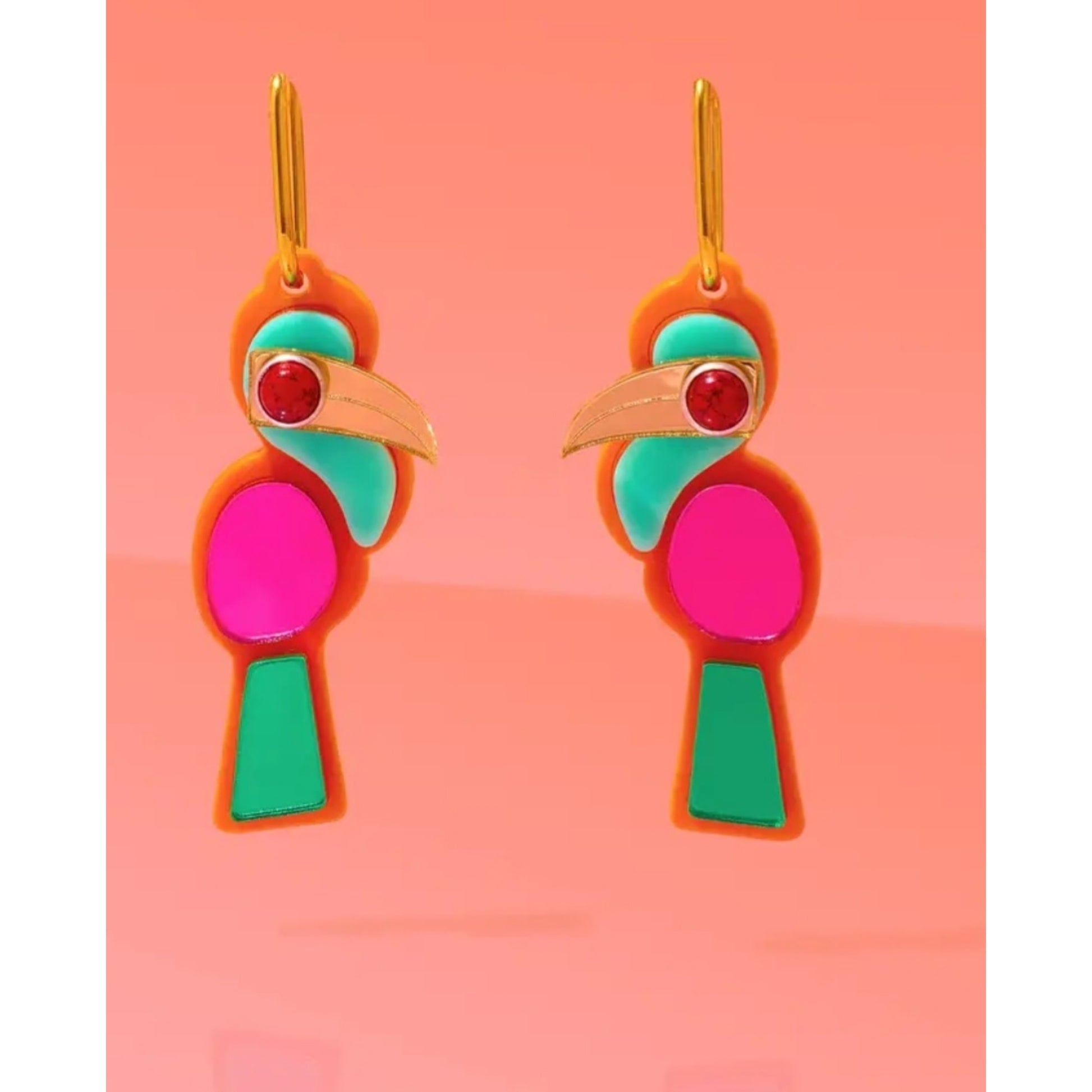 A beautiful accessory almost as stunning as the neotropical Toucan Bird. These stunning Toucan Hoop Earrings, will remind of the its name sake. Meticulously handcrafted by talented veteran women artisans. These vibrant earrings feature a playful toucan design made from high-quality acrylic and acrylic mirrors, ensuring a bold pop of color that catches the eye.