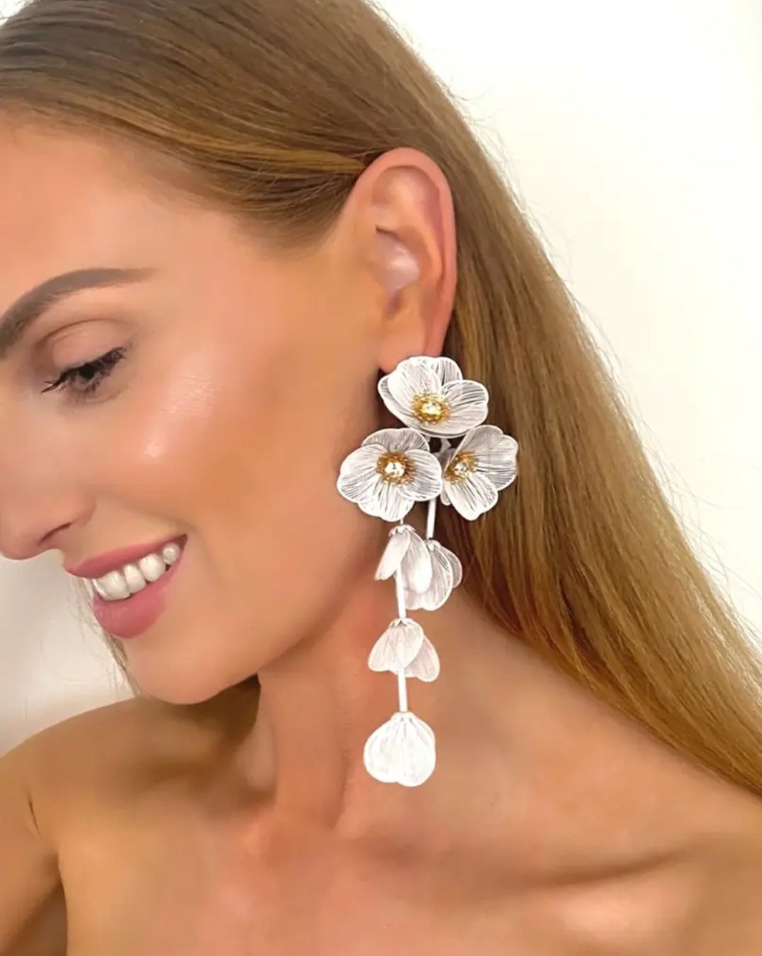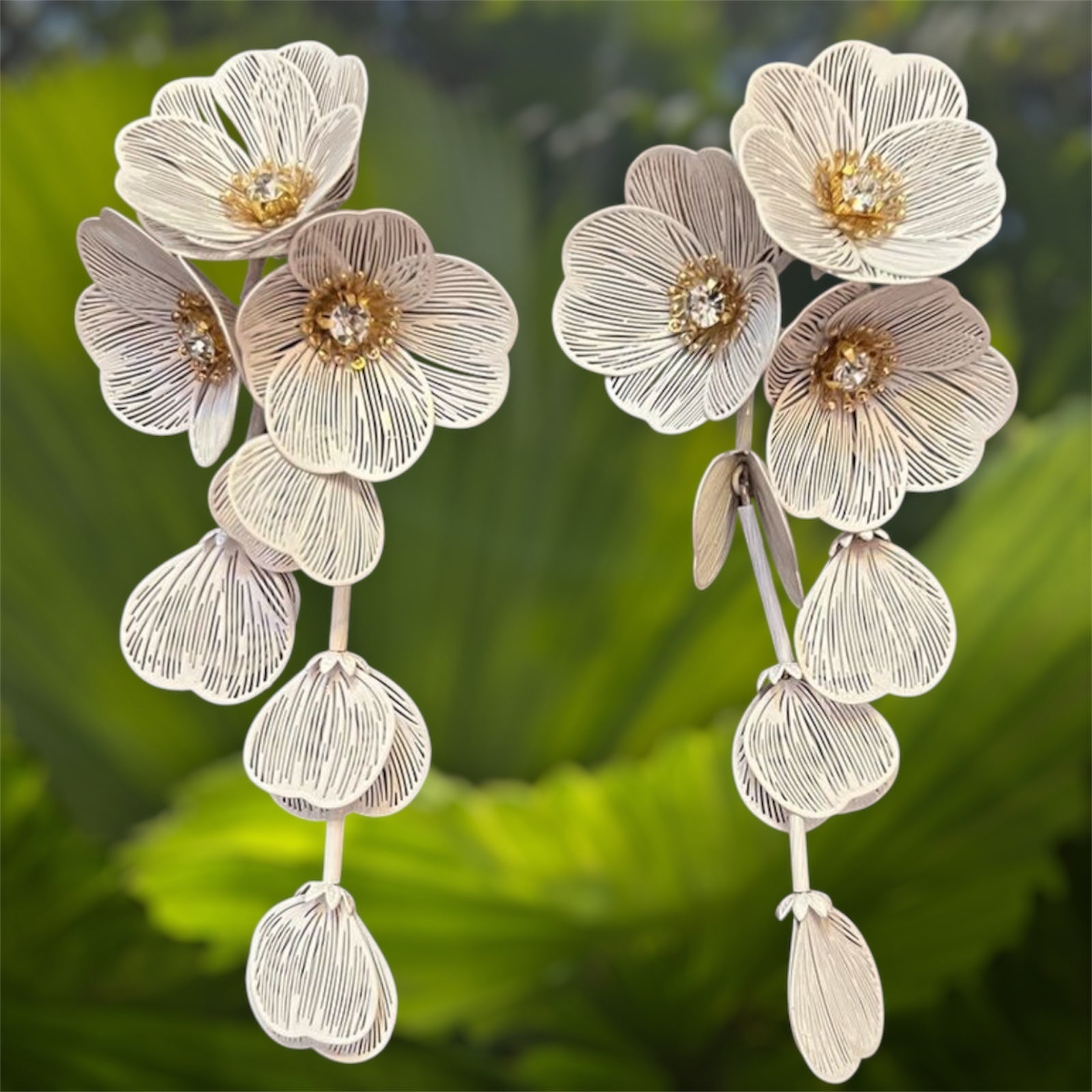 Waterfall Floral Statement Earrings – Bold Layered Flower Design for Elegant Fashion Looks