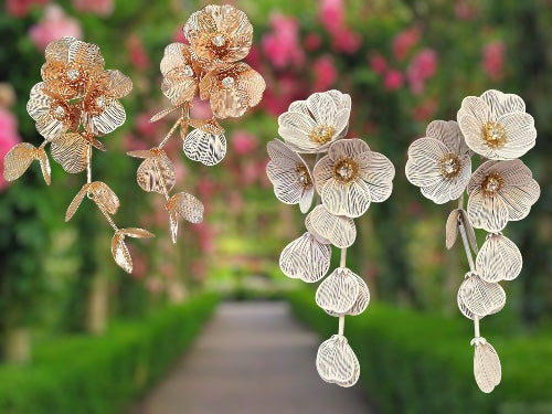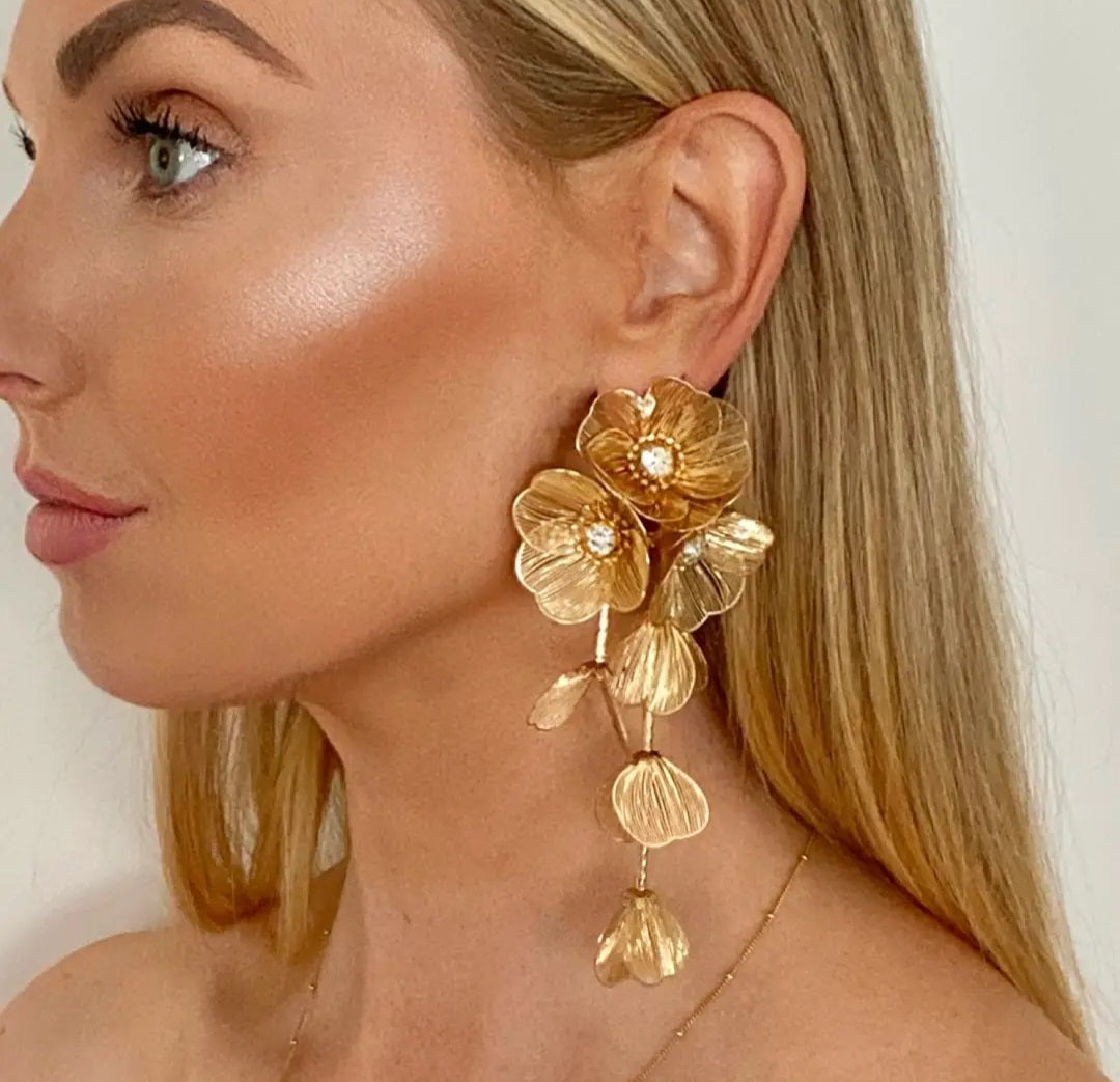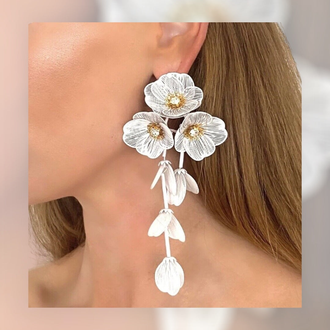 Add instant glamour to any outfit with the Waterfall Floral Statement Earrings — a cascading floral design that blends artistic beauty with lightweight comfort. Designed in the UK, these sculptural post earrings make the perfect standout accessory for weddings, parties, vacations, and everyday fashion flair.